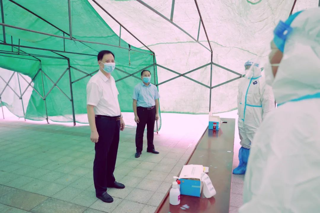 五河县东刘集镇与泗县、灵璧县部分地区交界,疫情防控任务较重。黄晓武来到这里,现场查看核酸检测、村庄和道路交通管理、移动方舱建设等情况,详细了解防疫措施,并看望慰问一线医务人员、防控工作者和志愿者。他要求进一步压紧压实疫情防控责任,落细落实各项防控举措,全力以赴把牢关口、筑牢防线,持续巩固来之不易的疫情防控成果。
