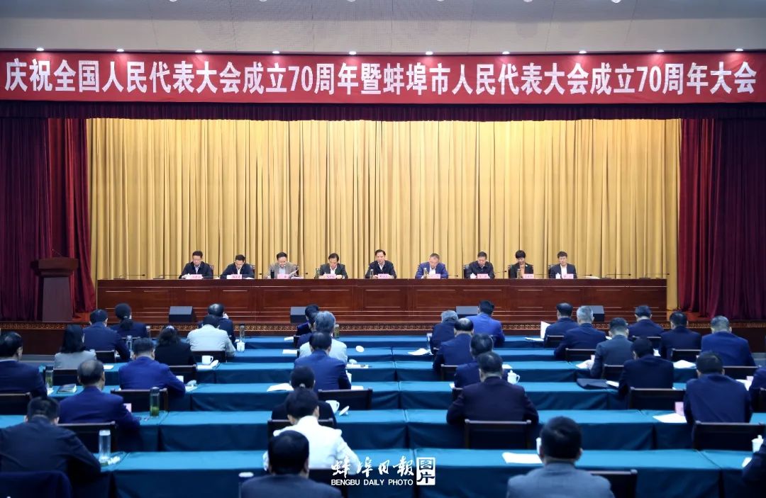 蚌埠发布客户端讯 (融媒体记者 顾楷/文 陈昂/图)11月4日上午,庆祝全国人民代表大会成立70周年暨蚌埠市人民代表大会成立70周年大会举行。市委书记黄晓武出席会议并讲话。他强调,要深入学习贯彻习近平总书记关于坚持和完善人民代表大会制度的重要思想和考察安徽重要讲话精神,认真落实党的二十届三中全会和省委、市委全会精神,在推进中国式现代化幸福蚌埠实践中进一步找准人大工作的切入点和结合点,不断开创新时代全市人大工作新局面。市领导马军、倪建胜、杨森、郭鹏、张晓静、郭家满、葛锐、潘君齐,市人大常委会、市政府负责同志出席会议。