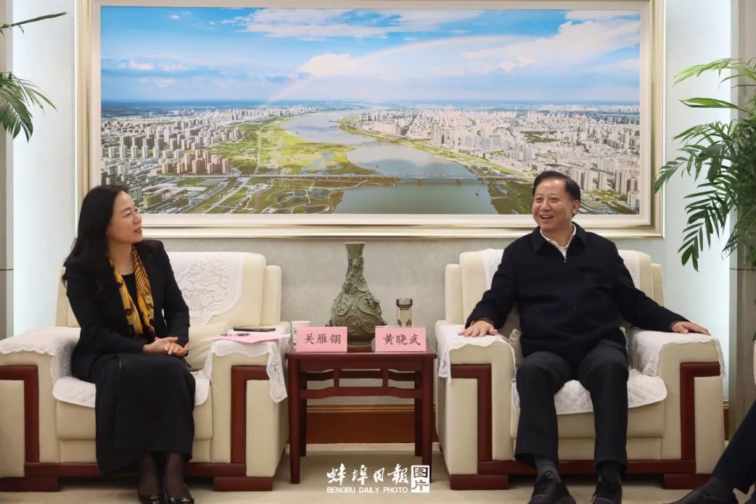 黄晓武对关雁翎一行来蚌表示欢迎,对建行安徽省分行长期以来关心支持蚌埠发展表示感谢。他说,当前,蚌埠正处于厚积薄发、动能蓄积、攻坚起势、加快发展的关键期、上升期,在聚力推进科技创新、产业转型升级、拥河发展、乡村振兴、文旅融合等工作,需要金融的大力支持。希望建行安徽省分行与我市继续深化合作,持续加大对重点领域的支持力度,与我市携手实现共赢发展。