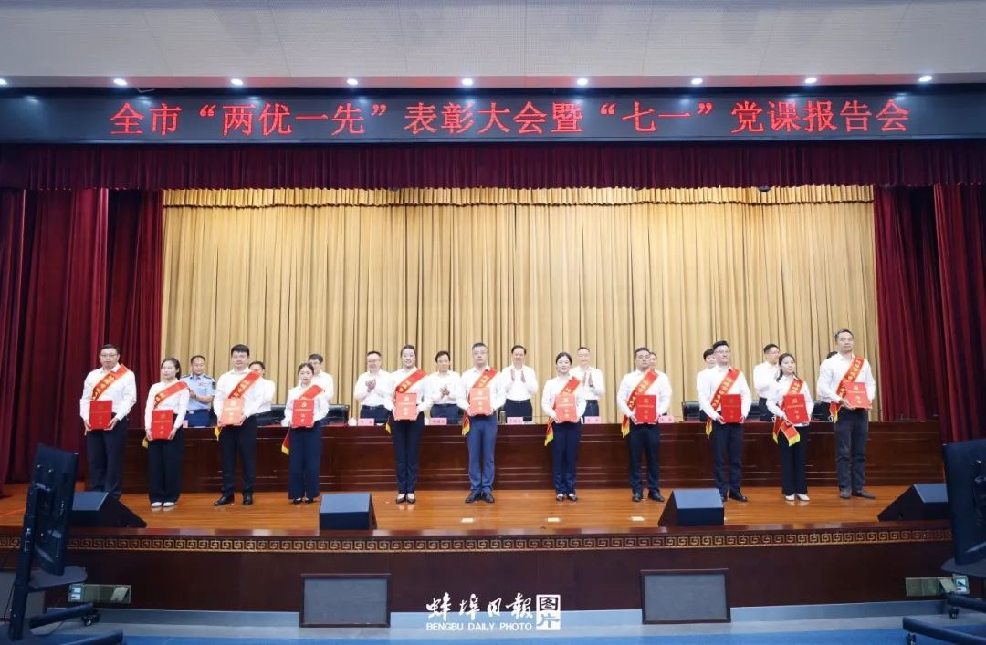 会议宣读了《中共蚌埠市委关于表彰优秀共产党员、优秀党务工作者和先进基层党组织的决定》,并为“两优一先”代表颁奖授牌。黄晓武代表市委,向受到表彰的先进集体和个人表示热烈祝贺,希望大家以榜样为标杆,努力学习先进、争当先进,继续冲锋在前、扛责在肩,在全市营造人人争先、事事争优的浓厚氛围,努力创造出无愧于时代、无愧于历史、无愧于人民的崭新业绩。