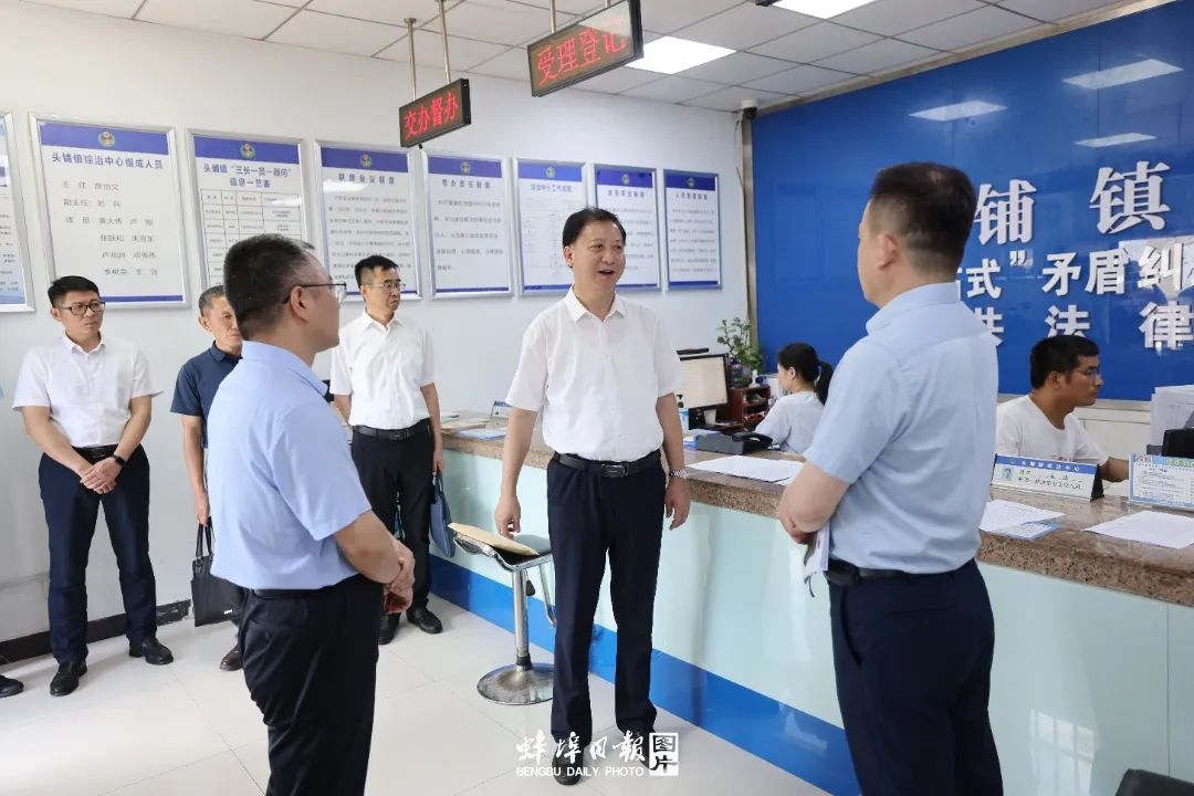 在五河县头铺镇,黄晓武走进镇“一站式”矛盾纠纷调解中心(信访超市),详细了解学习教育和信访等工作开展情况。他指出,头铺镇在五河县推进工业化、城镇化的进程中,承担着繁重的征地拆迁任务。镇村党员干部要以开展学习教育为契机,扎实走好新时代党的群众路线,坚持用好“党建引领、一组一会、五治融合”基层社会治理模式,全面了解群众诉求,坚持未雨绸缪、超前谋划,切实保障群众利益;坚持公开、公平、公正,自觉接受群众监督;坚持“三到位一处理”原则,大力推进信访工作法治化,全力做好征地拆迁各项工作,为五河城市建设和项目发展创造最优环境。