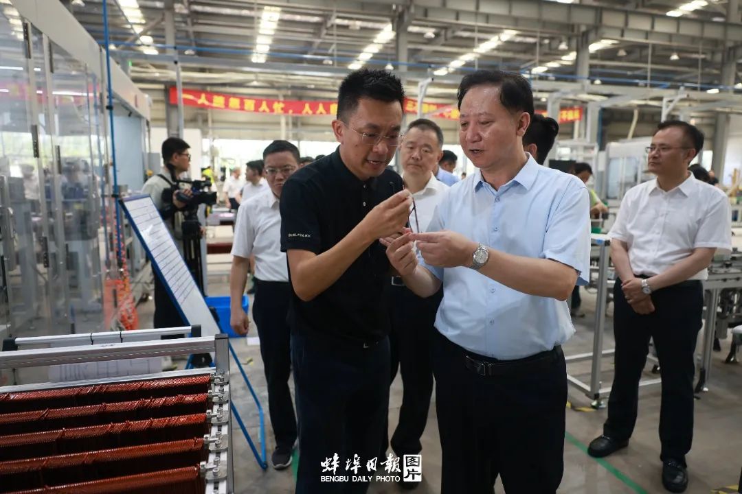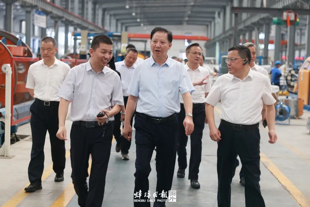 7月的珠城,骄阳似火,淮河两岸到处是热气腾腾的发展气象。两天的时间里,黄晓武、马军率队深入三县六区,马不停蹄地调研了怀远县奥普汽车年产200万套汽车制动器总成和100万套真空助力器、淮上区伟光电缆、固镇县浩晟智能车载玻璃盖板系列产品、五河县博旺资源综合利用、禹会区深蓝航天液体火箭智能制造基地、高新区昊方机电年产8万吨铝铸件新能源绿色铸造、经开区福瑞士电池科技蚌埠产业园、龙子湖区液力机械5G智能工厂数字化转型示范、蚌山区丰原生物年产40000吨聚乳酸矿泉水瓶胚及瓶盖等33个项目。