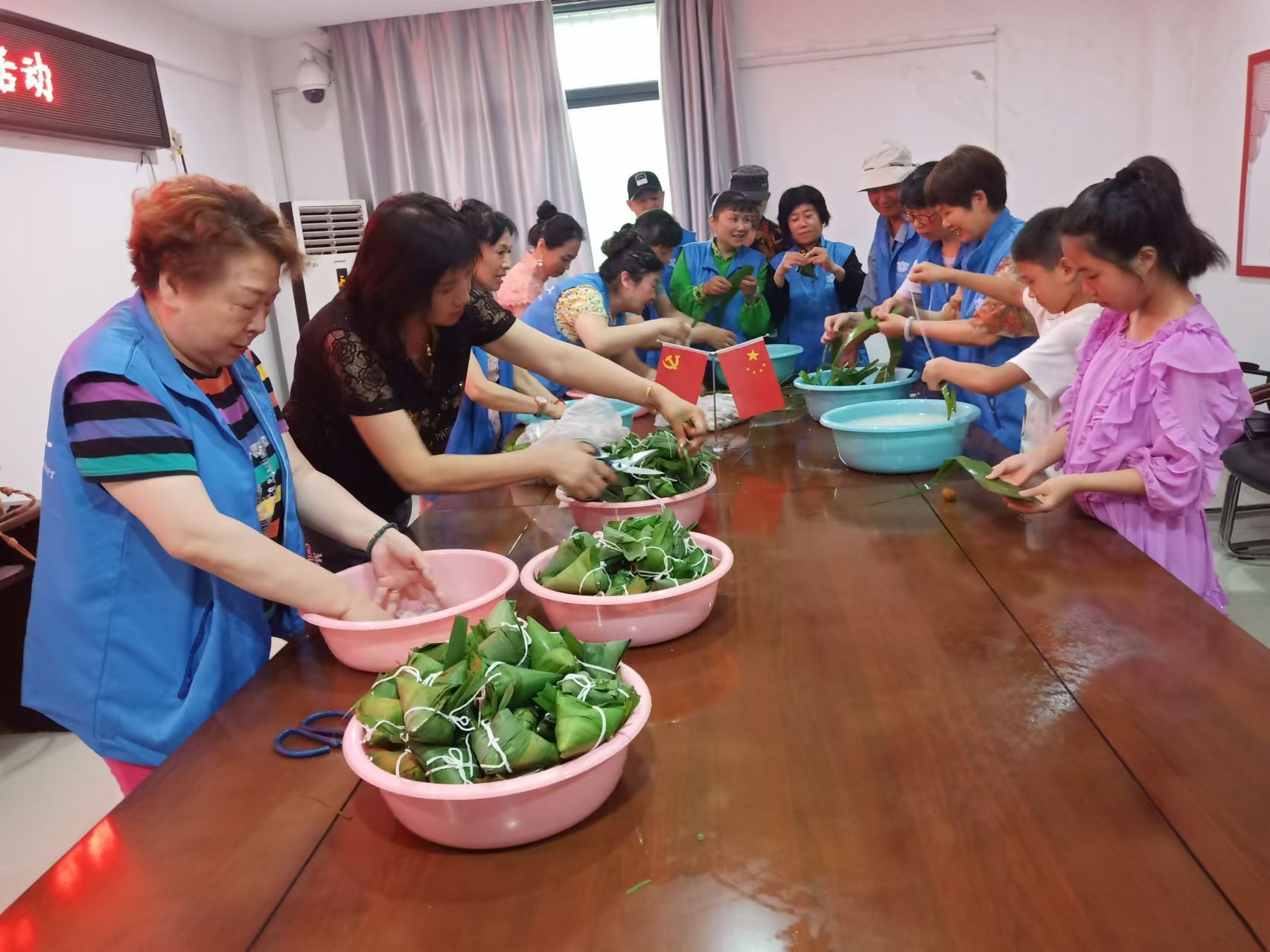 折粽叶、装糯米、放馅料、裹紧扎绳……5月26日下午,蚌埠市大慈义工协会来到宏业村街道(雪华乡)烟墩社区,与社区居民一起包粽子,感受中华传统文化魅力,激发爱国情怀。