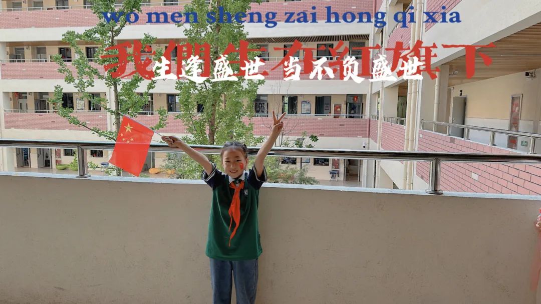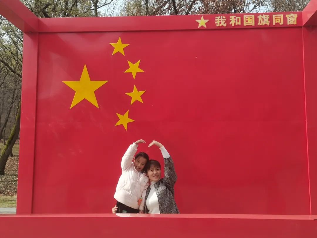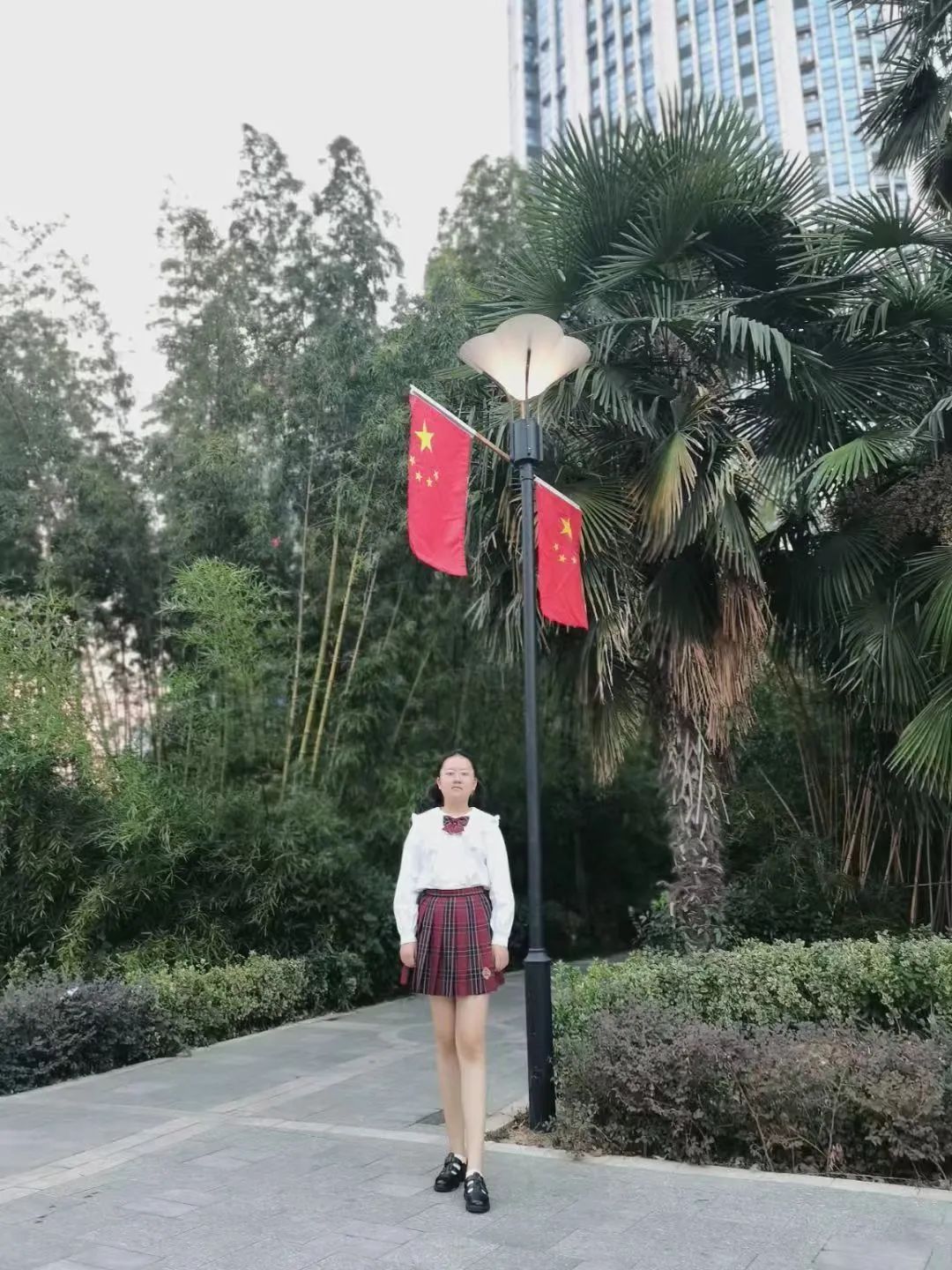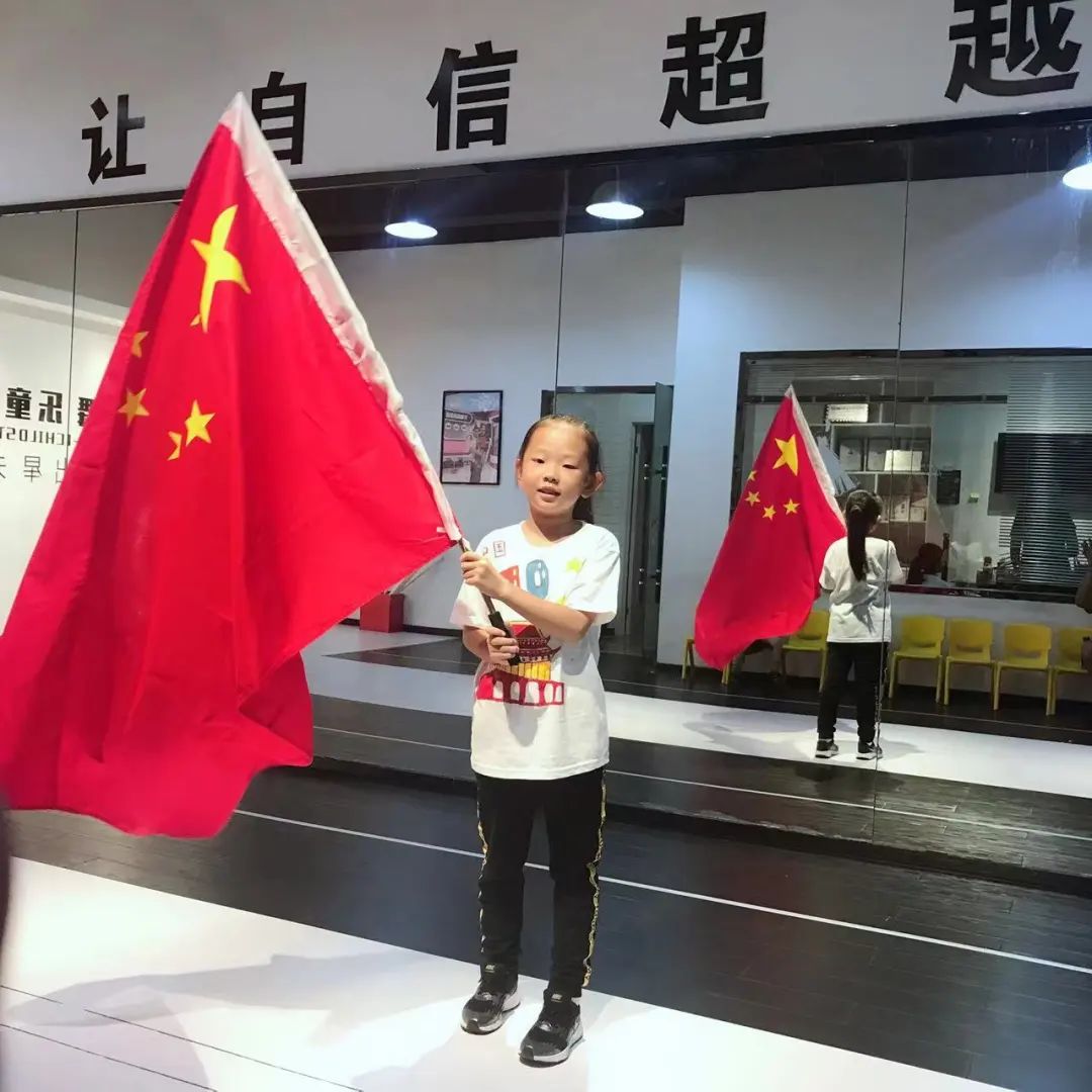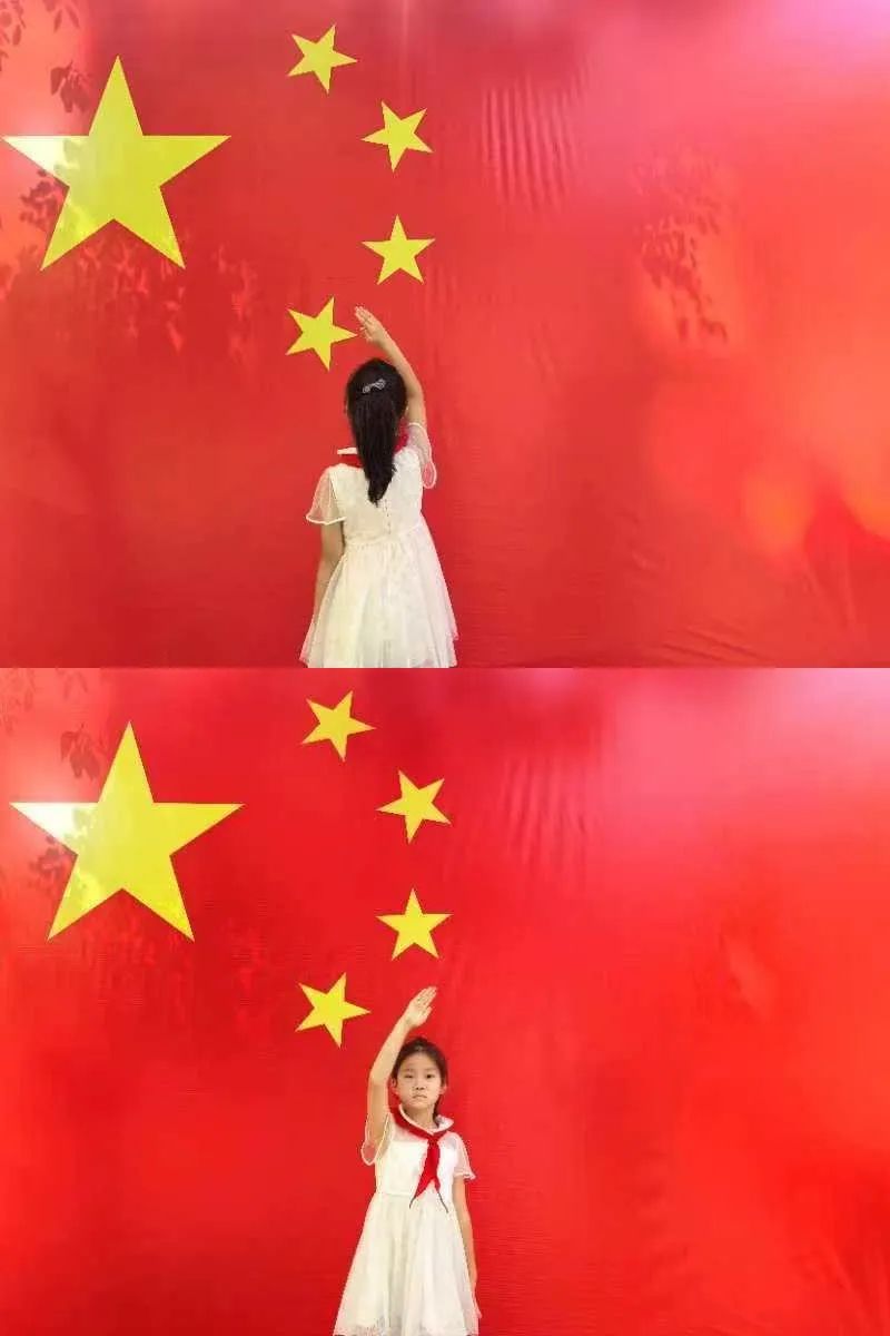 和五星红旗一起拍照片,心情美美哒,我一定会好好读书,长大以后报效祖国! ——沈艺潇