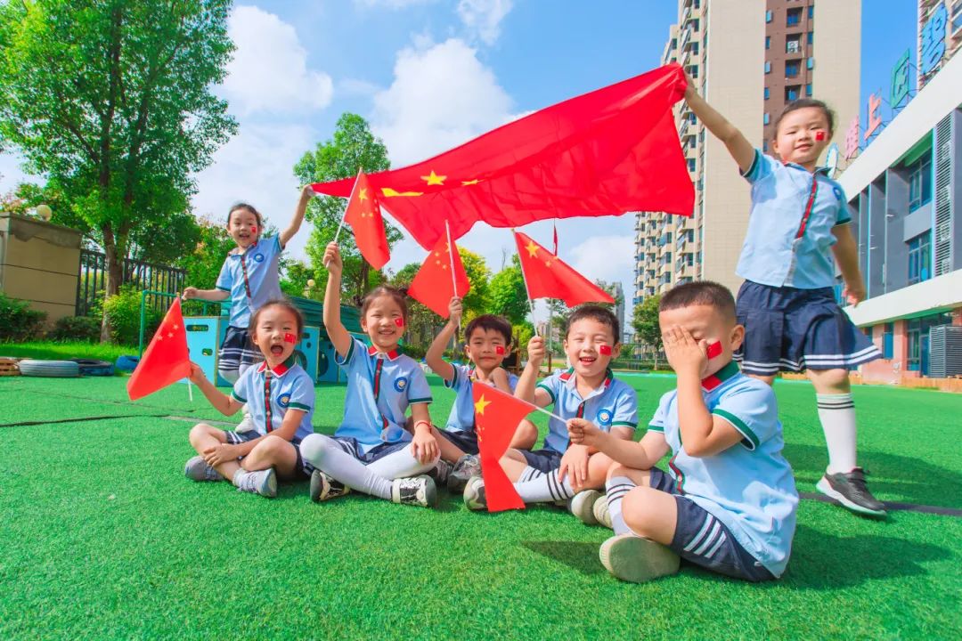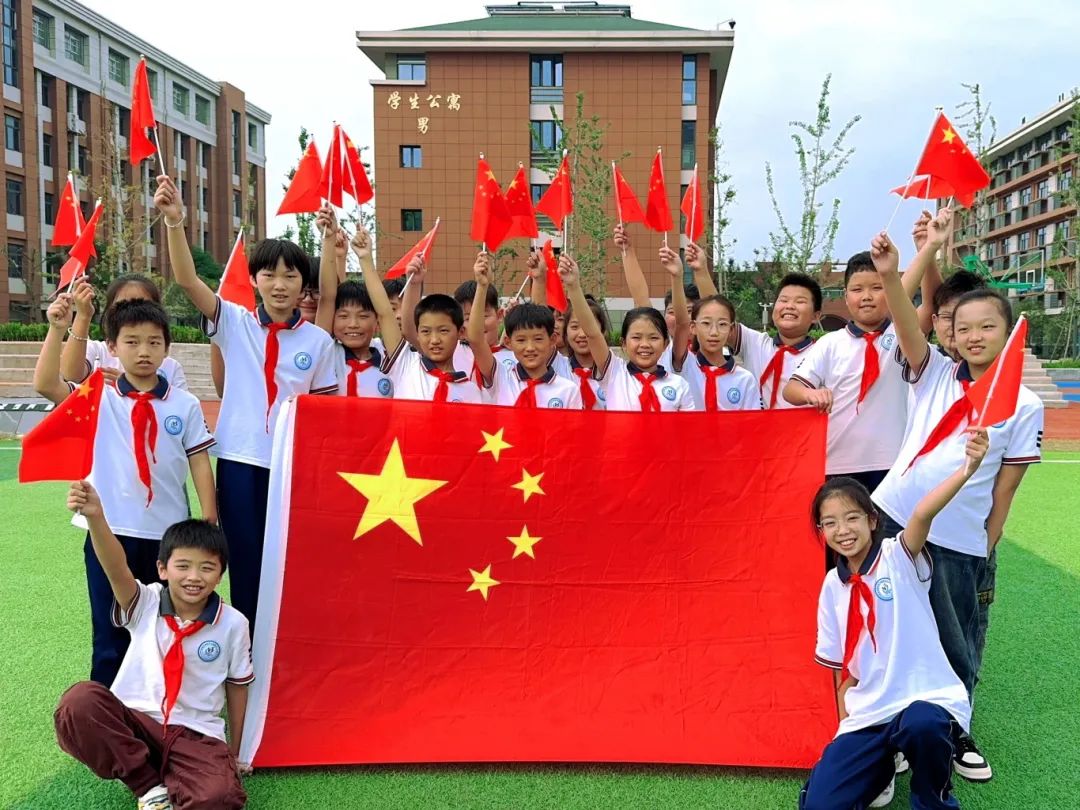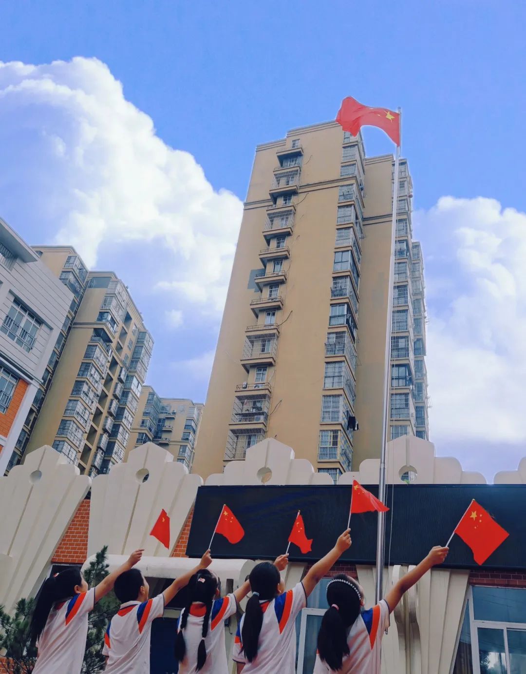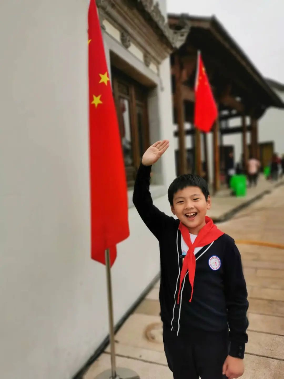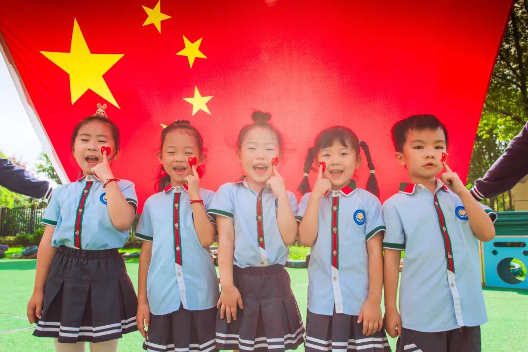 和五星红旗一起拍照片,心情美美哒,我一定会好好读书,长大以后报效祖国! ——沈艺潇