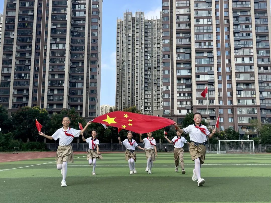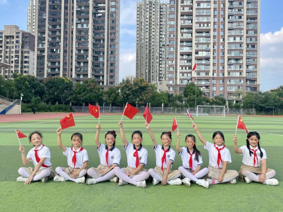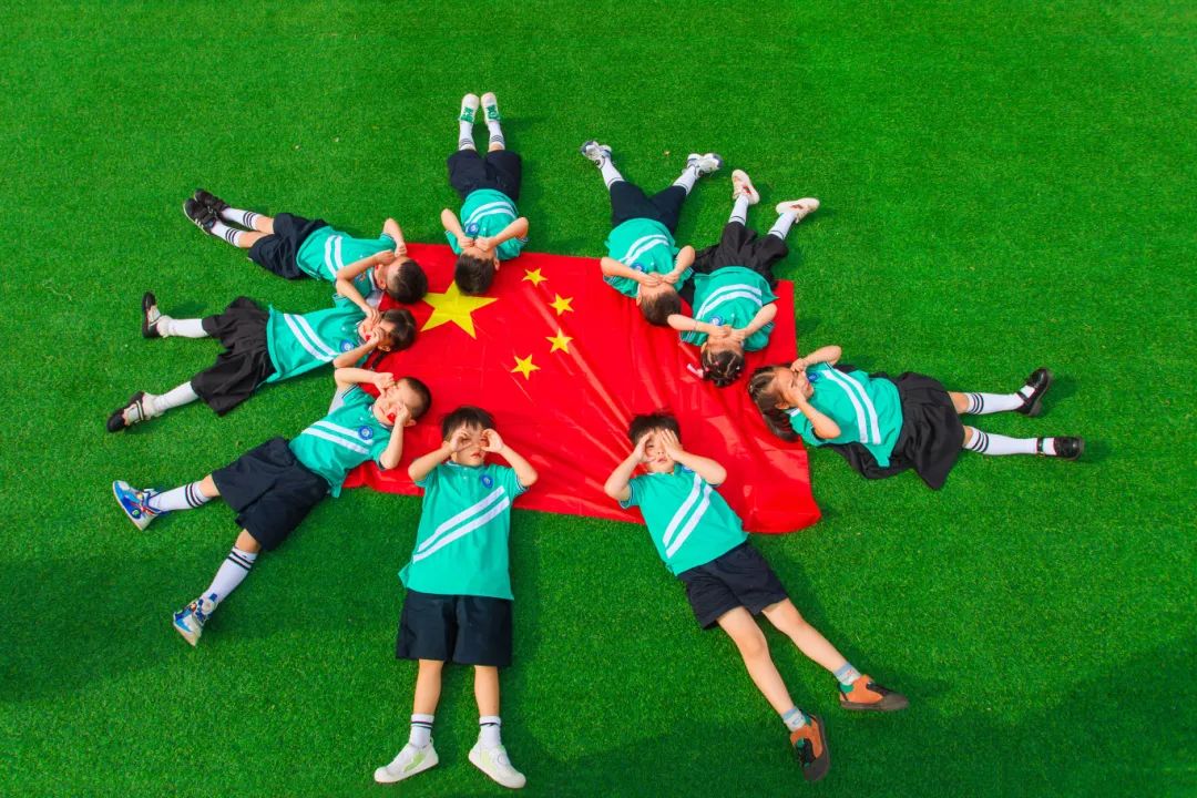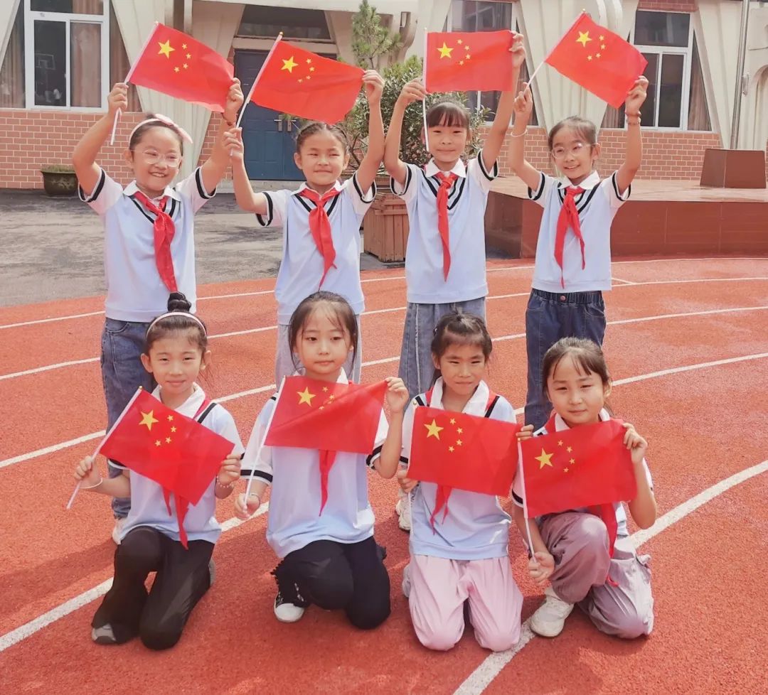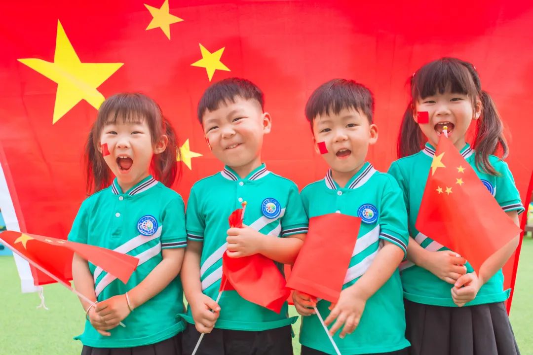 和五星红旗一起拍照片,心情美美哒,我一定会好好读书,长大以后报效祖国! ——沈艺潇
