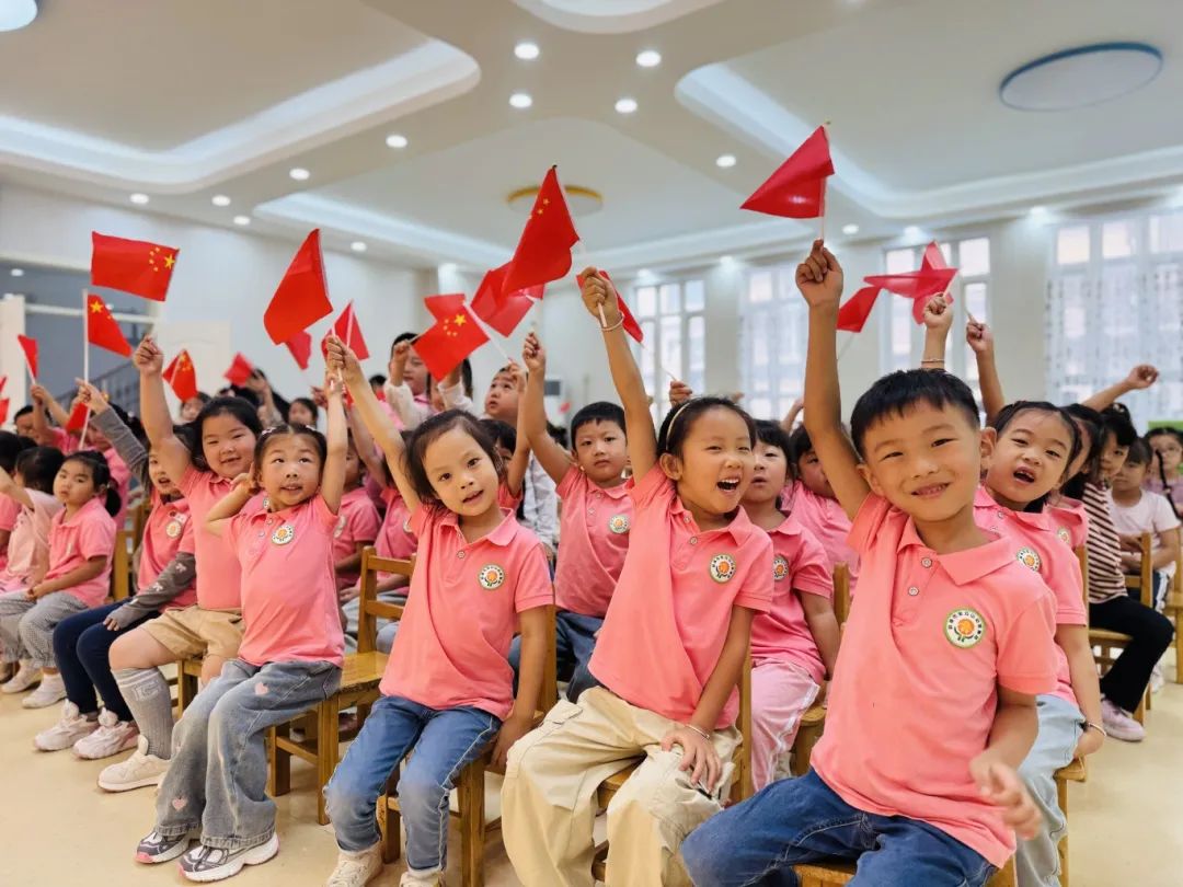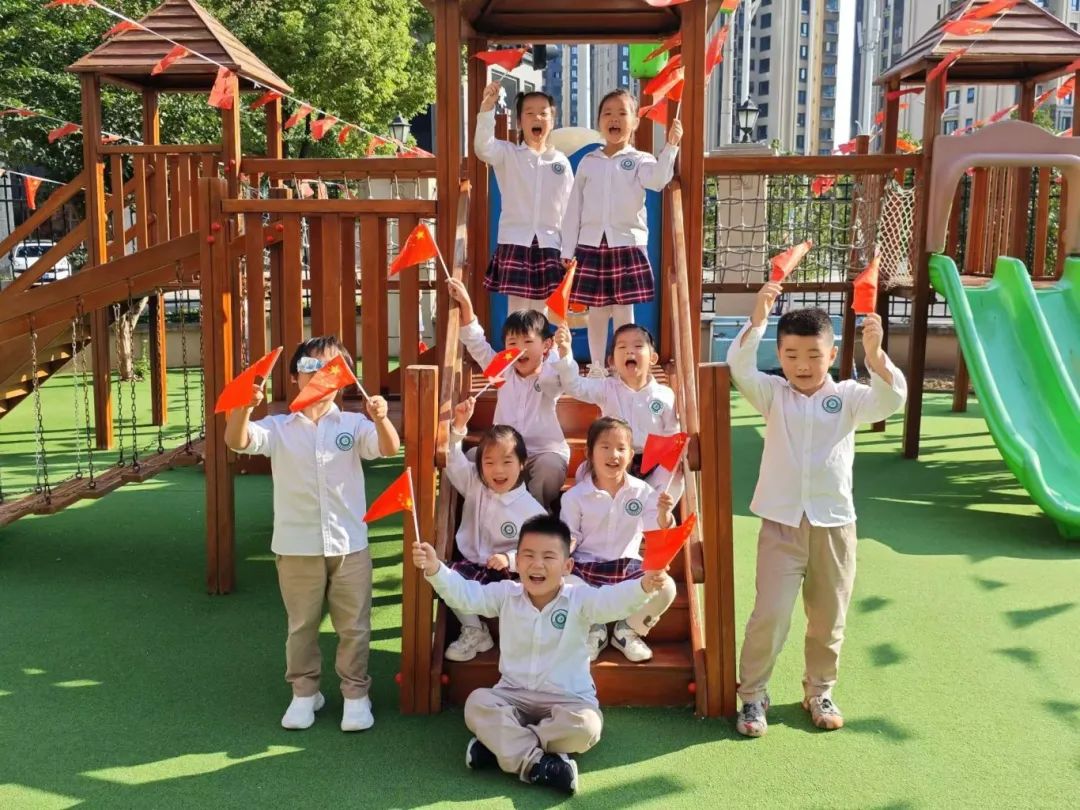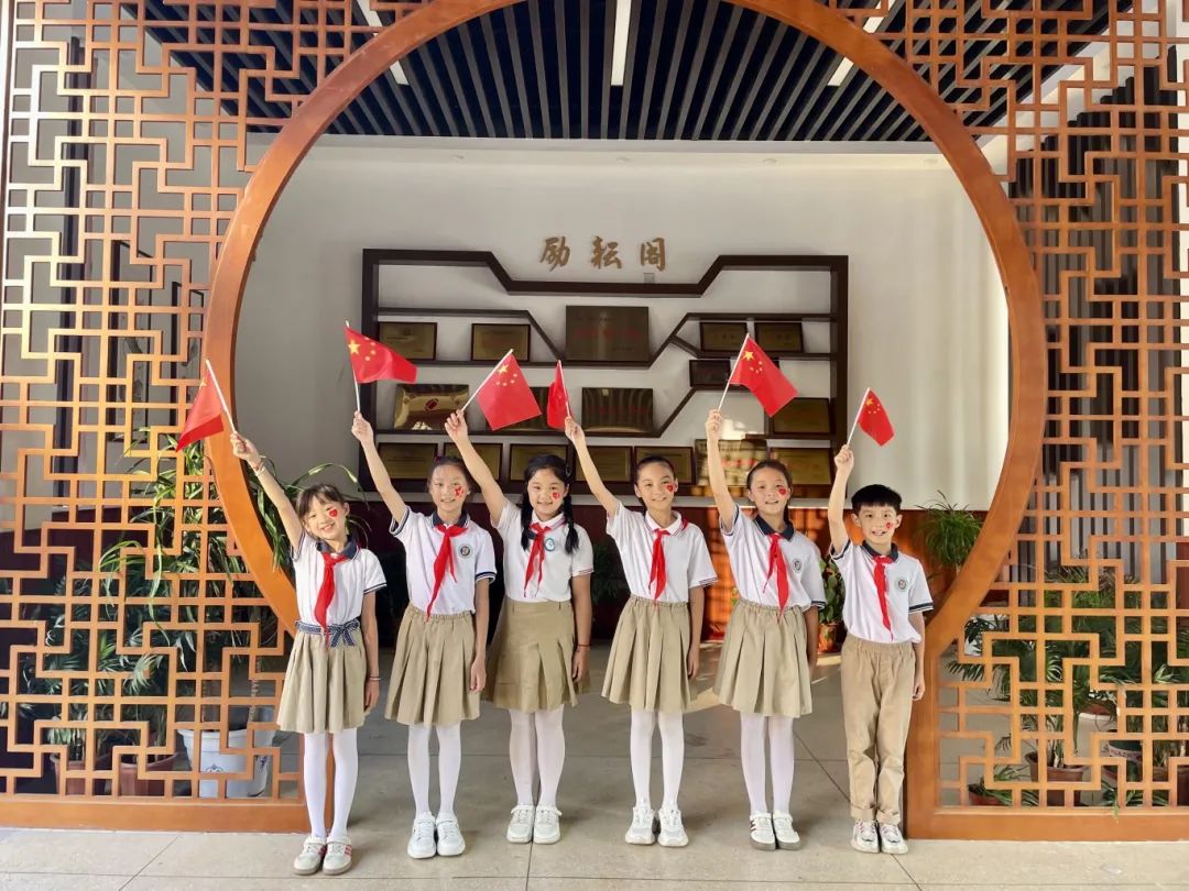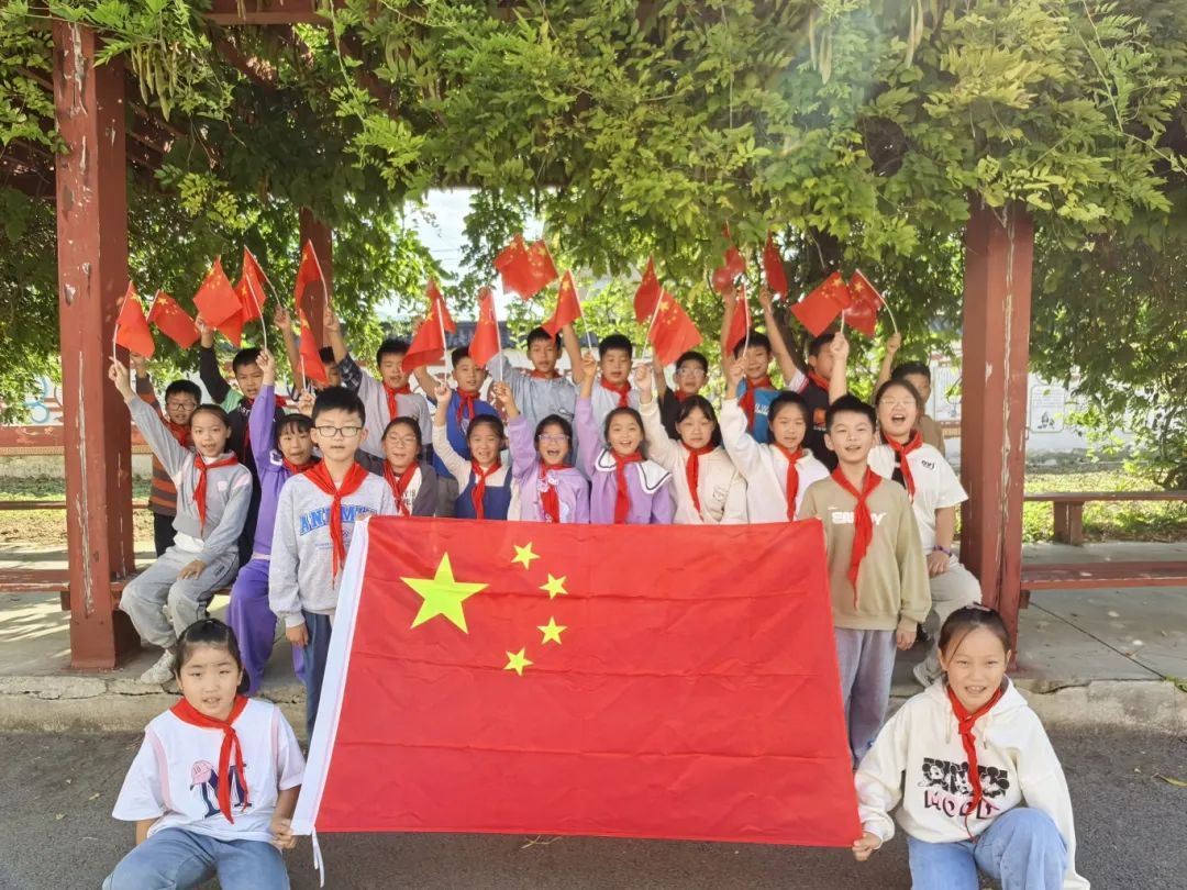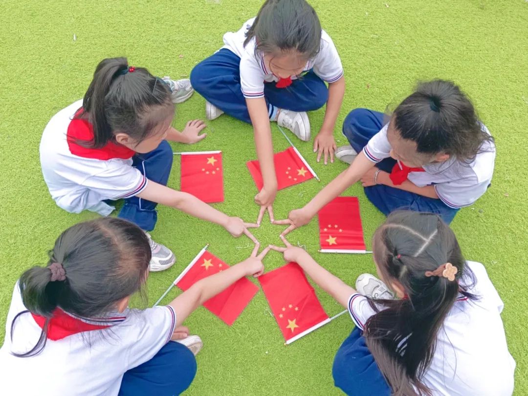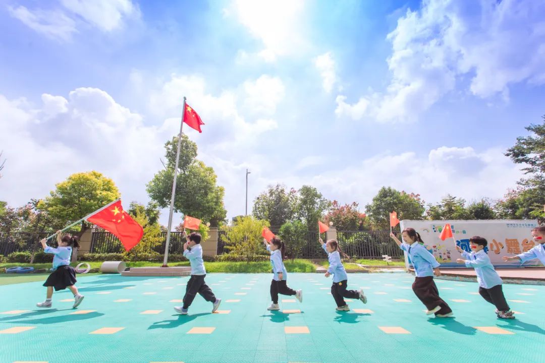 和五星红旗一起拍照片,心情美美哒,我一定会好好读书,长大以后报效祖国! ——沈艺潇