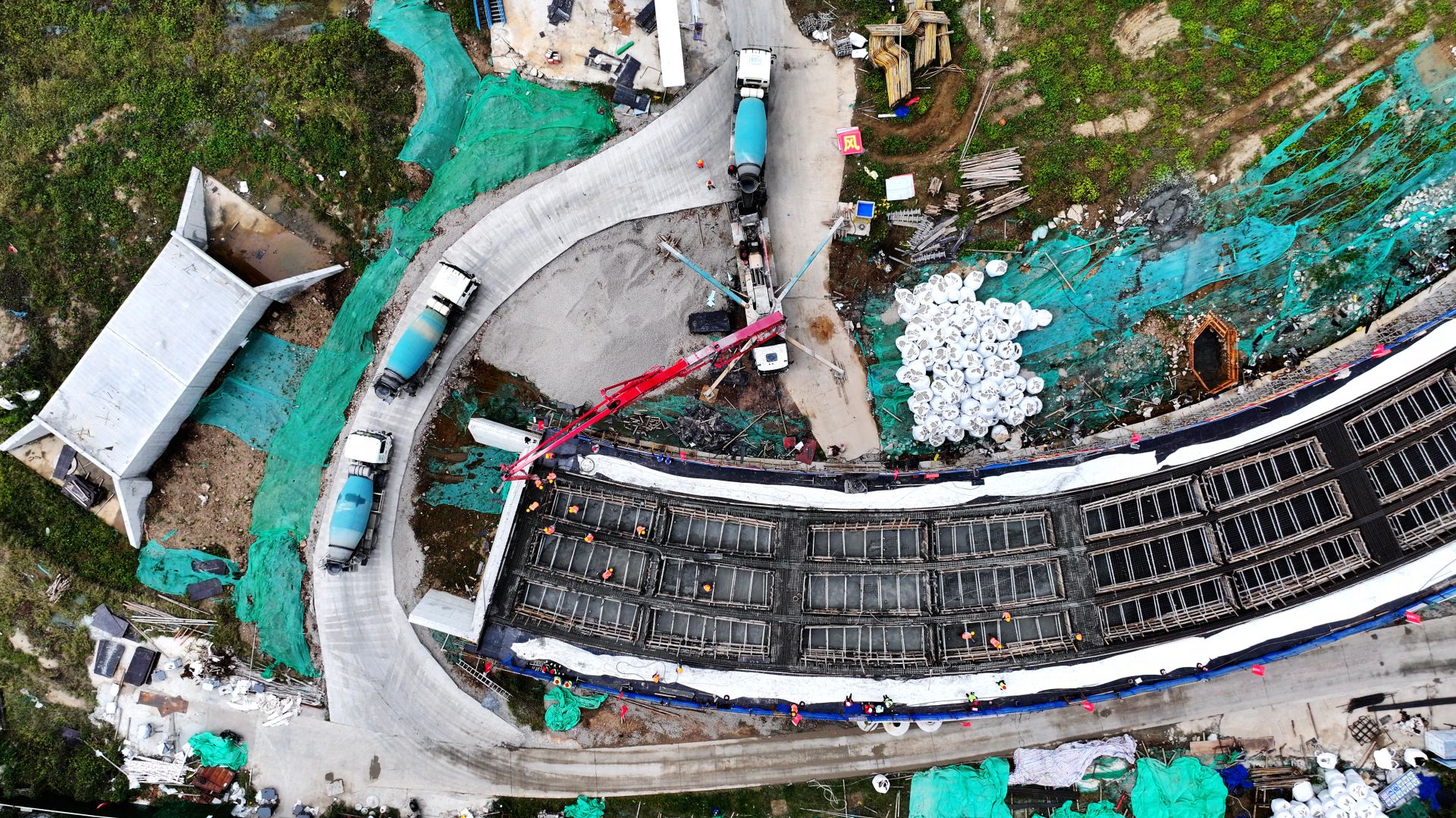 蚌埠发布客户端讯 10月16日上午8时许,位于淮河北岸的延安路大桥及接线工程现场,一台泵车高高架起,一台台水泥罐车来回穿梭,施工人员在对B匝道桥第三联进行混凝土浇筑。当日上午,该工程启动匝道桥首件现浇箱梁浇筑作业,标志着桥梁正式进入上部结构施工阶段。