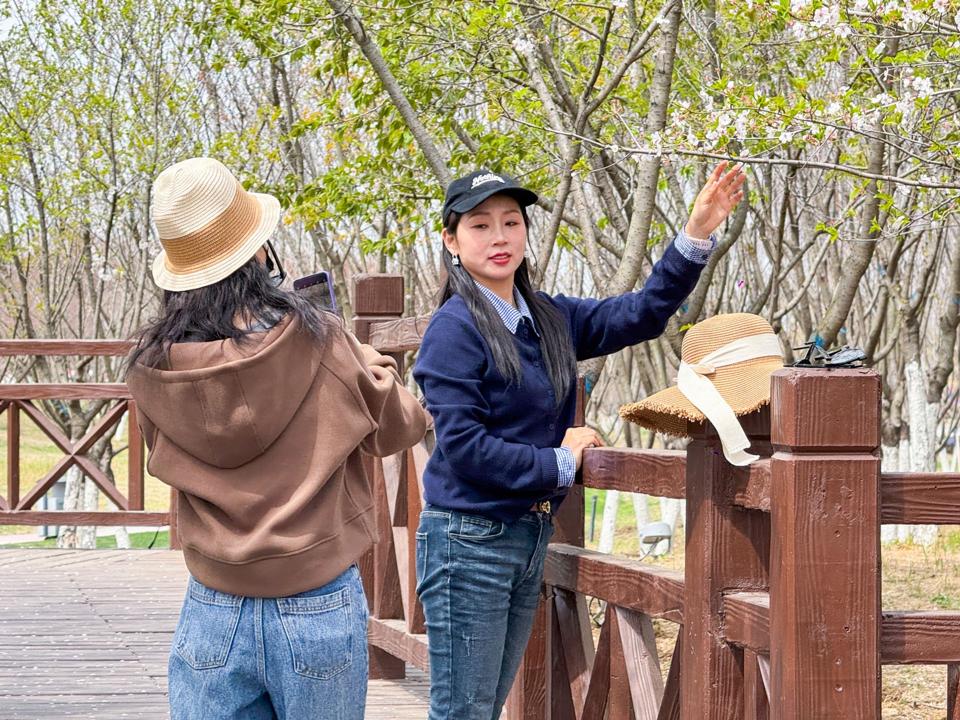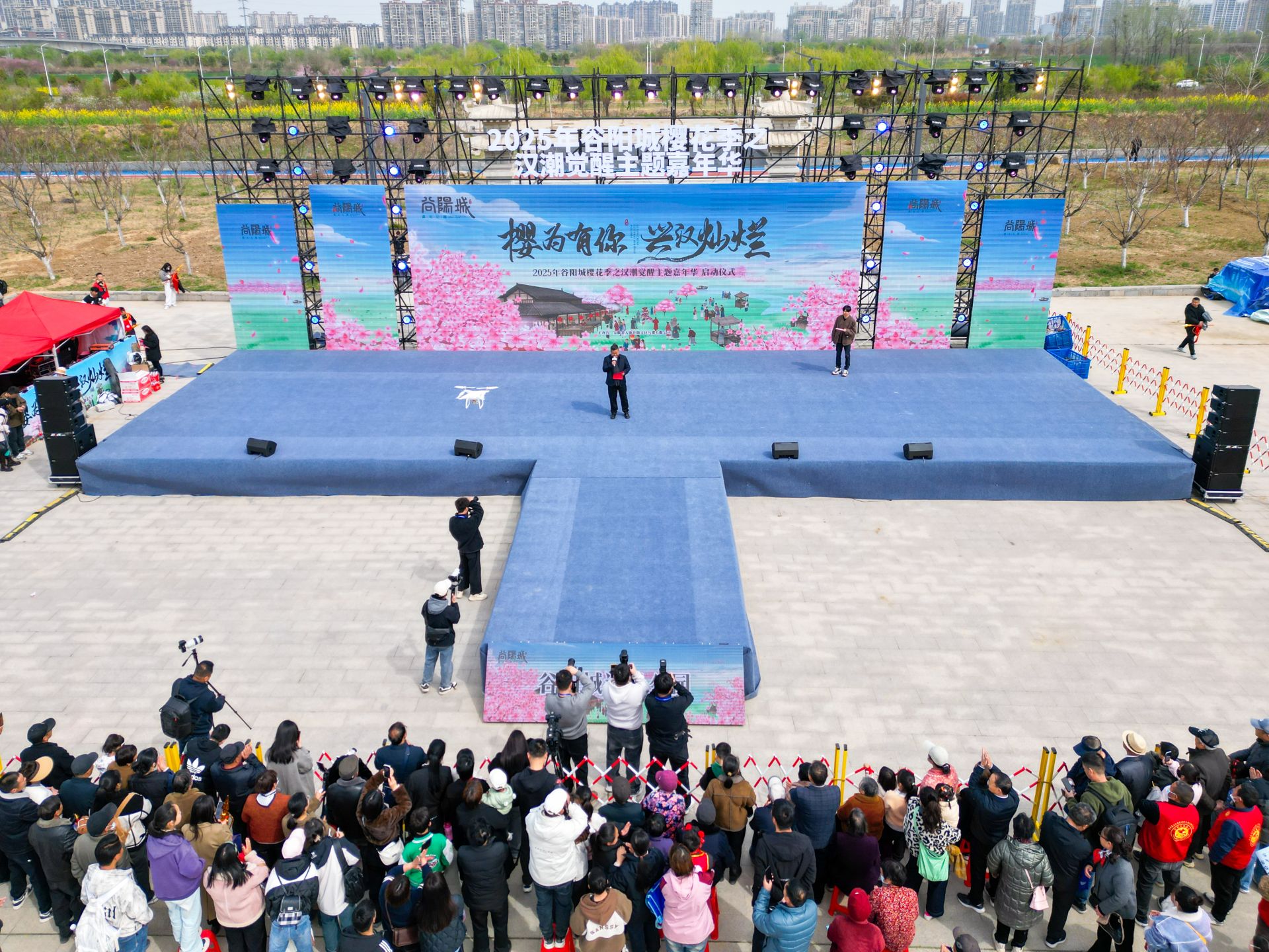 晨光咬破薄雾时,仿汉阙的飞檐如墨线勾勒于粉云之间,着曲裾深衣的少女执缂丝团扇轻点花枝,惊起一场簌簌的樱雪。那些坠落的花瓣,吻过夯土城墙的裂痕、栖在考古探方边缘……当古城垣邂逅转瞬即逝的粉霞,15万株樱花便成了春风翻动的历史便签。