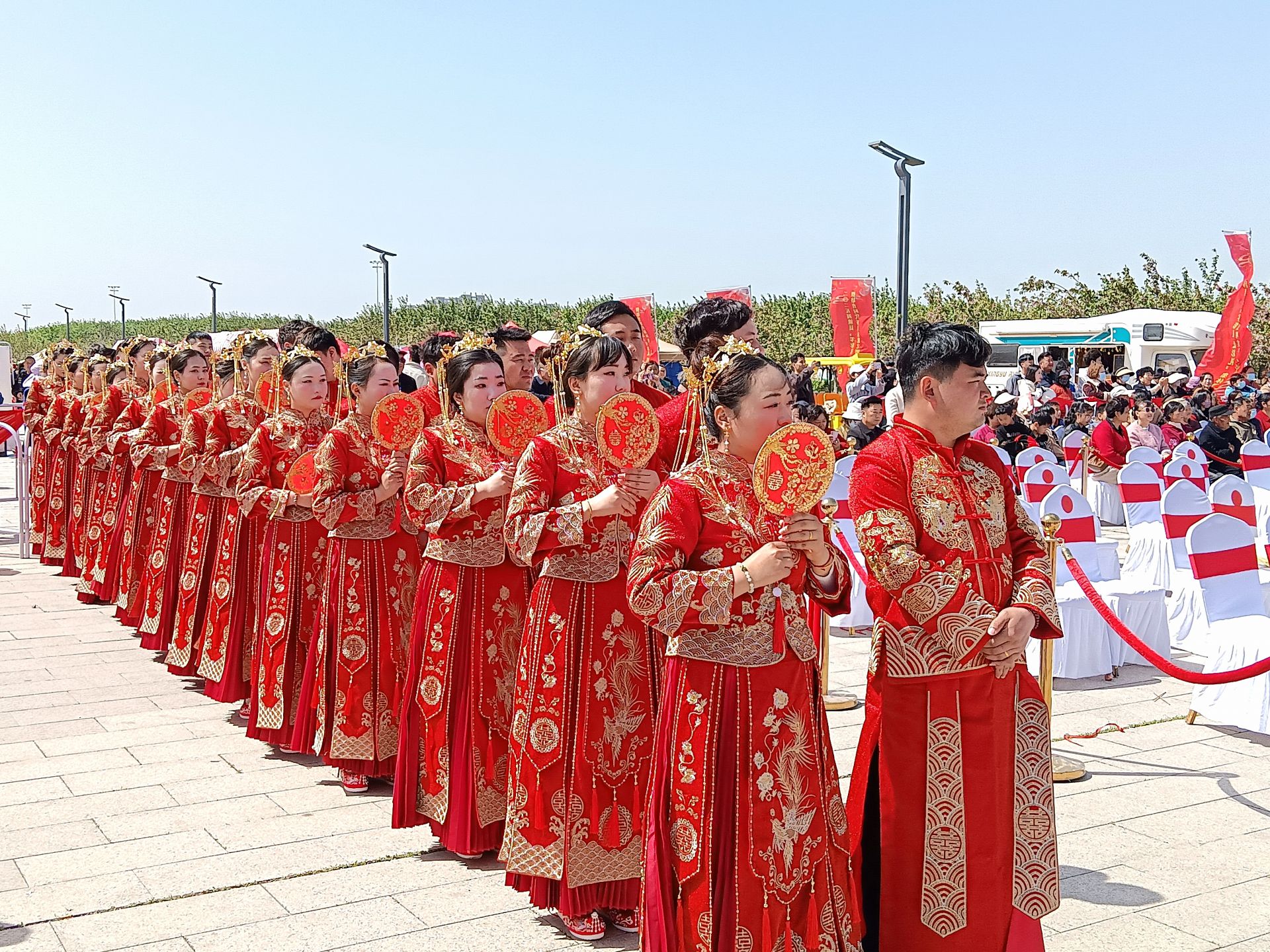 4月13日,由固镇县新时代文明实践中心指导,固镇县委组织部、县委宣传部等多部门联合主办的2025固镇县“零彩礼 低彩礼”集体婚礼暨培育时代新风新貌文明实践活动在谷阳城遗址公园(樱花园)温情启幕。