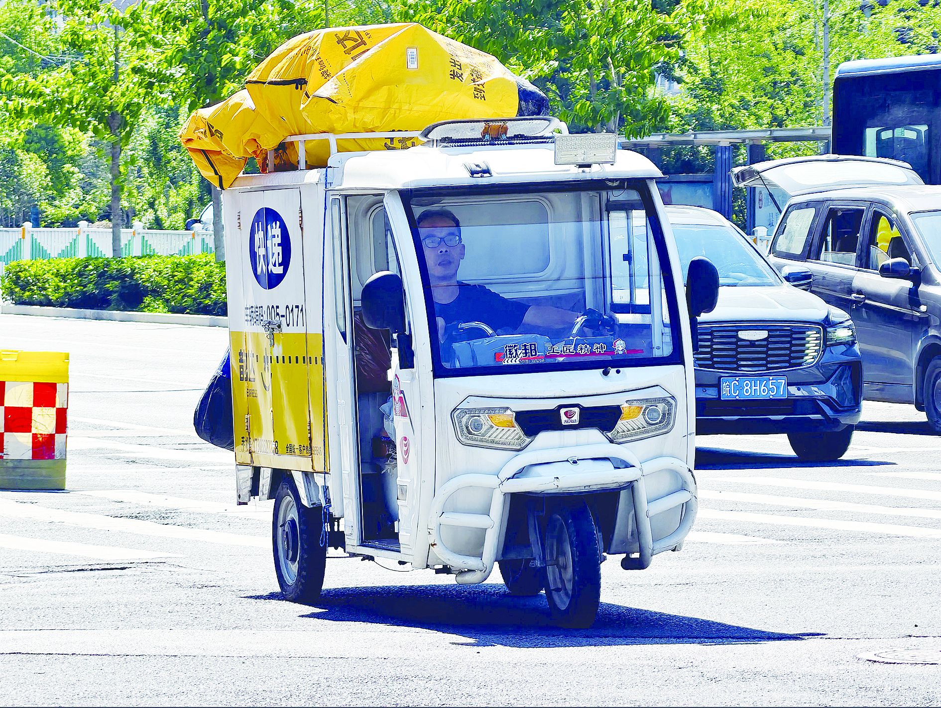 7月3日,一辆快递三轮行驶在路面上,只为将包裹及时送到客户手中,用汗水传递着便捷,在这炎炎夏日里,勾勒出一道别样的奋斗风景线。