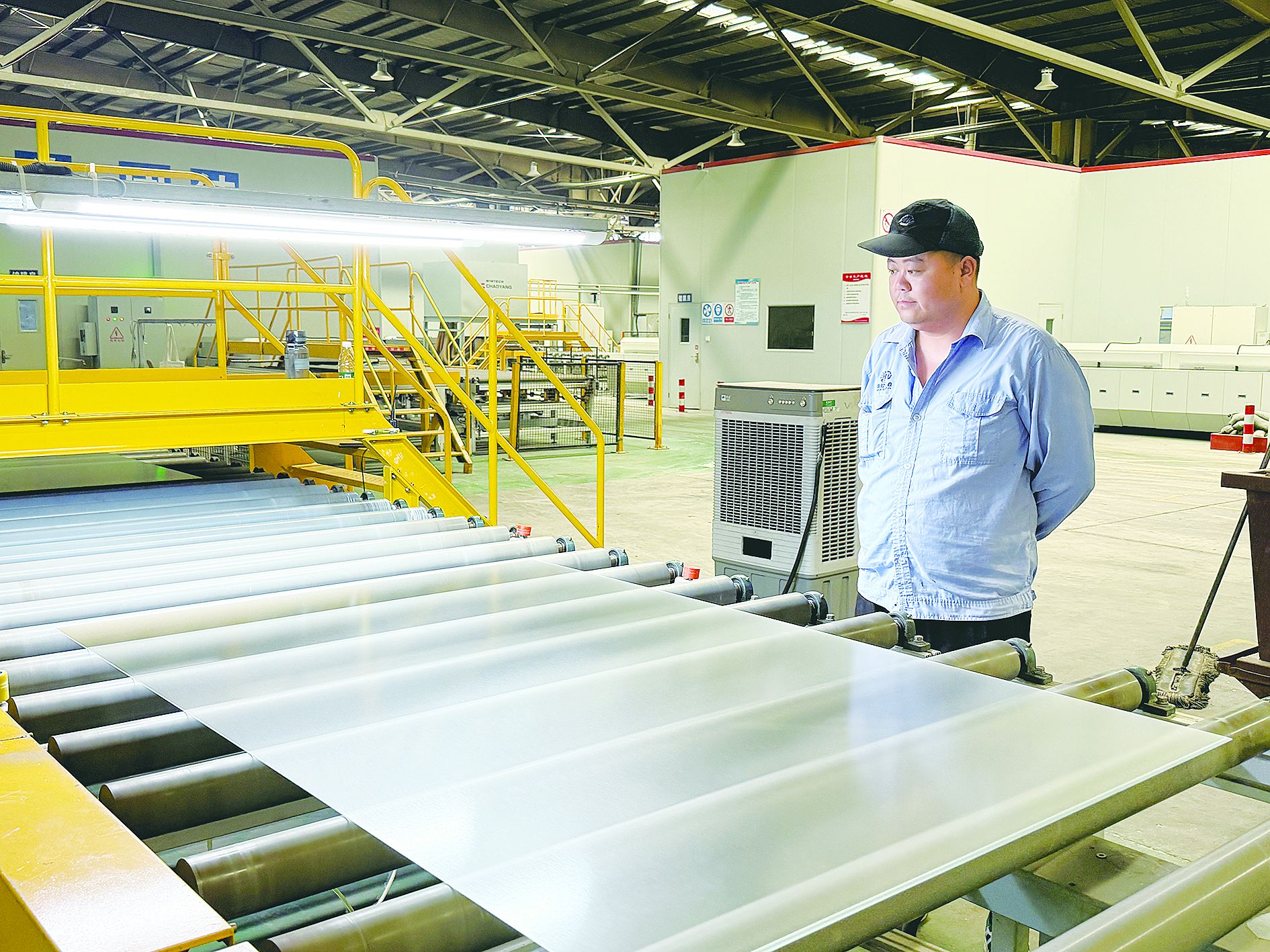 7月3日,海控三鑫(蚌埠)新能源材料有限公司生产车间内阵阵热浪袭来,部分区域温度高达40摄氏度。工人们在高温环境下坚守岗位,全力赶制销往国内外的光伏玻璃订单。为缓解长时间高温作业带来的不适,公司在各岗位安装了大功率风扇,配合冰块通风降温。