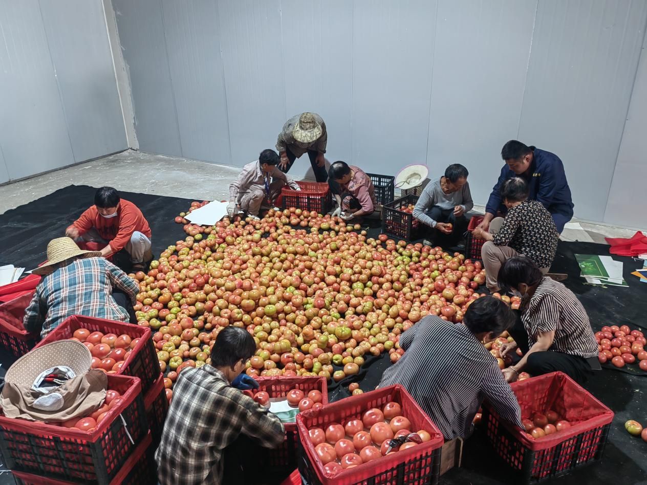 笔者在蚌埠市安禾农业发展有限公司的冷库里分拣处,只见地上放满了刚采摘的大红西红柿,十多位村民手脚麻利地把个头差不多大的西红柿挑拣进筐里,再一个挨一个摆放整齐,待装满一筐后,抽出一张身旁叠放的粉红色纸盖在上面,打包完成后,装上冷藏车。一位从事销售的负责人,指着刚上车的西红柿说:“我们的西红柿采摘后,就立即送到批发市场上进行销售,这样才能确保新鲜,营养不流失,吃起来口感更好。”