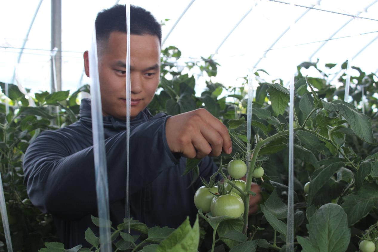 王贺是一名退伍军人,从部队退伍后选择回乡创业,2022年开始利用大棚种植西红柿,平时都是他和妻子一起打理,收获旺季再雇人来帮忙,一年下来,纯利润也有10多万元。王贺说:“刚退伍的时候也种过常规种农作物,一年下来顶多挣个两三千块钱。农闲时还要出门打工,这样一比较,我觉得还是搞特色农业挣钱多。我今年种植了26个大棚的西红柿,全部采用早春棚种植,再加上只施用有机肥和自制的农家肥,不仅持续结果性强,成果率高,而且西红柿的口感特别好,酸甜沙糯汁多,价格也在5元左右,刚上市就供不应求。由于今年气候较适宜,西红柿长得特别好,估计今年仅西红柿种植一项纯收入就能达到15万元。”