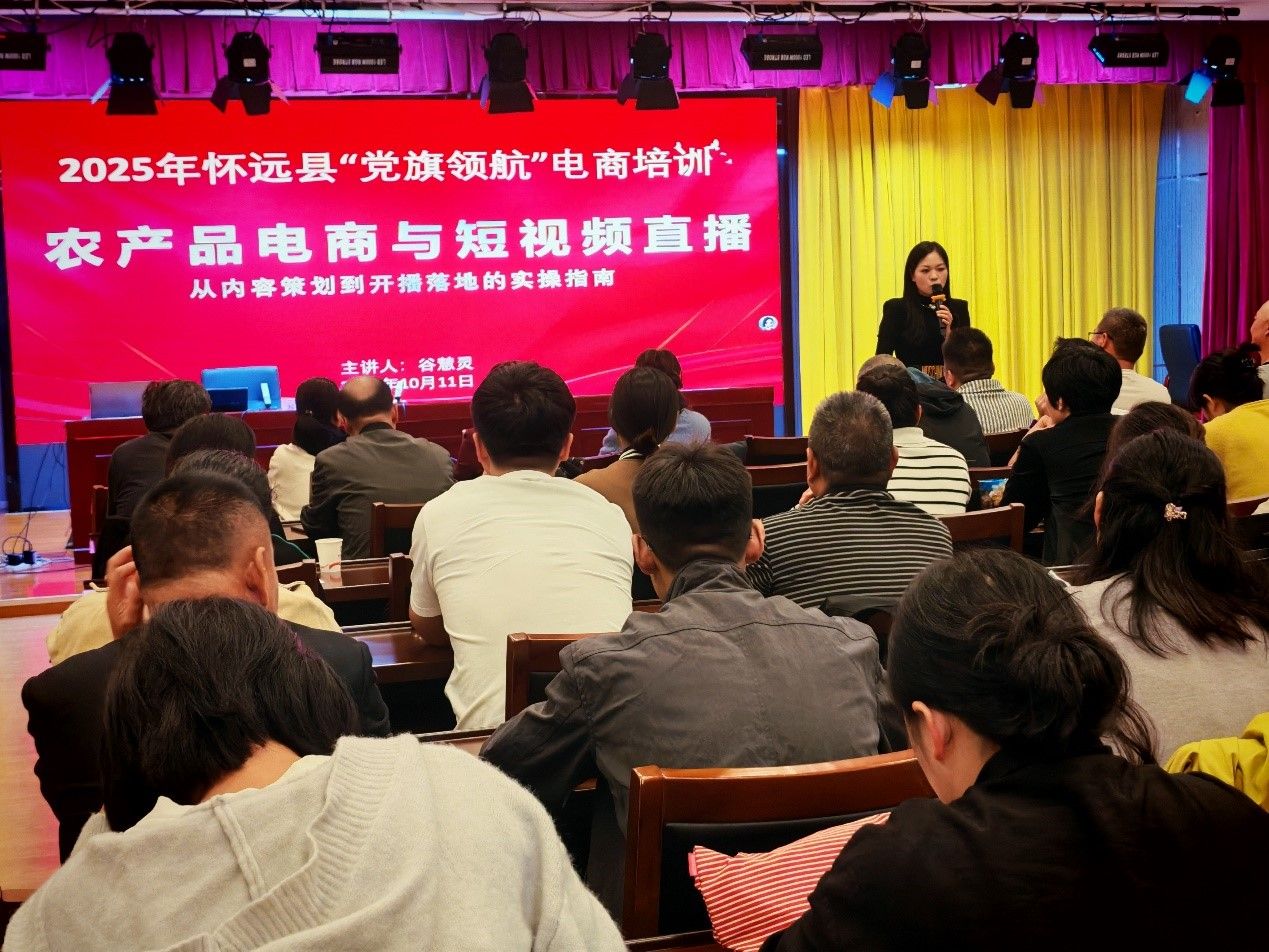 为充分发挥电子商务在拓展农产品销售、激发消费市场活力、带动创业就业等方面的重要作用,10月11日,怀远县委组织部、县商务局联合举办2025年“党旗领航”电商培训班。此次培训班面向全县村党组织书记、驻村工作队队员、村“两委”干部等群体,培训人数共计120余人。