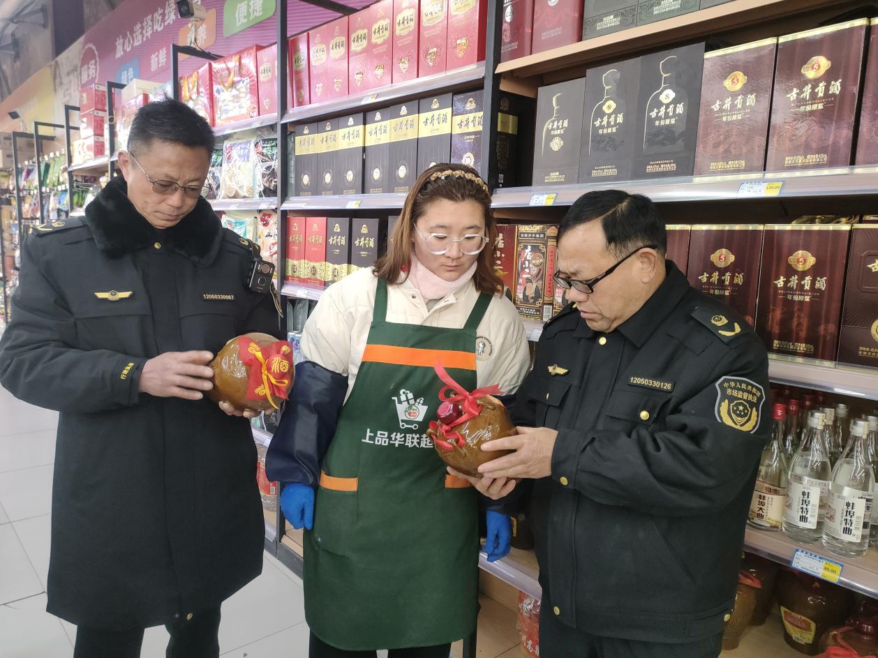爆竹声中一岁除,春风送暖入屠苏。春节已近,年味渐浓,随之酒类市场也已进入销售旺季。为保障广大人民群众能够喝上一杯安全健康的美酒,愉悦度过一个和美幸福的新春佳节。近日,固镇县市场监管局刘集所开展了节前酒类市场专项检查。