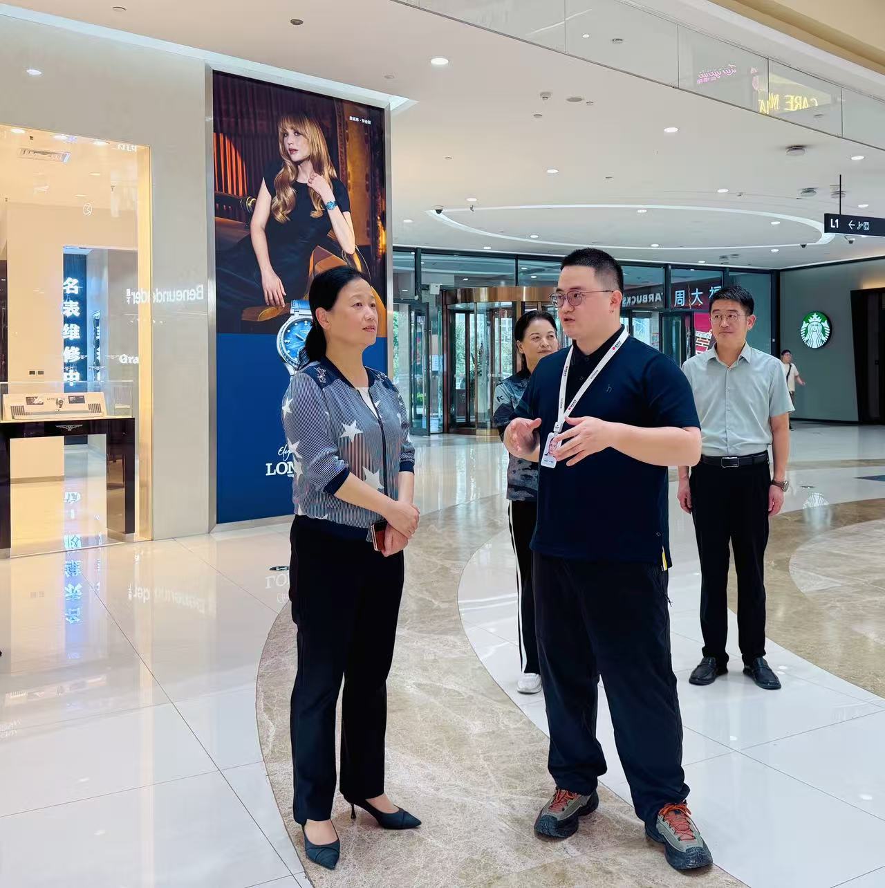 在万达广场,桑延慧详细了解国庆、中秋货品供应情况,并走进万达地下超市建设现场,查看装修设施及用电线路安全等,嘱咐企业要一手抓发展、一手保安全,努力实现经济效益与社会效益的双赢。来到银泰城,桑延慧对企业积极营造节日氛围,激活消费的做法给予充分肯定,并与企业负责人座谈交流,听取意见建议。她指出,万达广场和银泰城作为东海大道商圈的龙头商业综合体,要抢抓“两节”机遇,开展丰富多样的促销活动,繁荣市场,方便百姓。相关部门和乡街要主动为企纾困解难,做好服务保障。