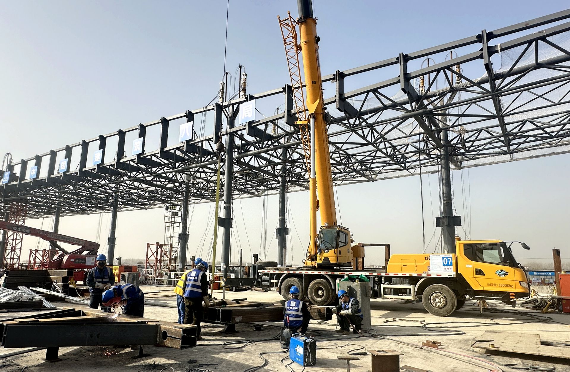 当日作业的航站楼作为机场的核心建筑,是项目建设重点和难点,航站楼屋盖采用双向管桁架结构,是蚌埠市目前为止跨度最大、结构最为复杂的钢结构项目