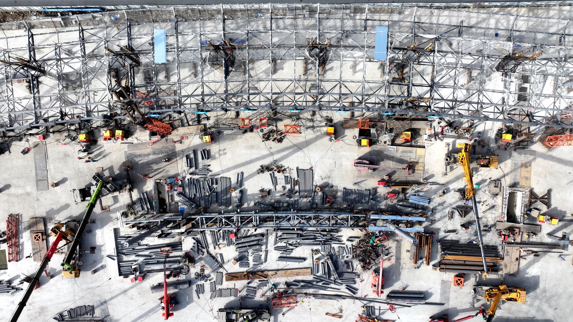 据蚌埠民用机场工程部副部长汪俊杰介绍,此次钢结构屋面桁架提升标志着蚌埠民用机场钢结构施工进入全面冲刺阶段,下一步他们将锚定年度目标,力争年底前完成屋盖全面提升,实现航站楼主体结构封顶。(融媒体记者 刘晨摄