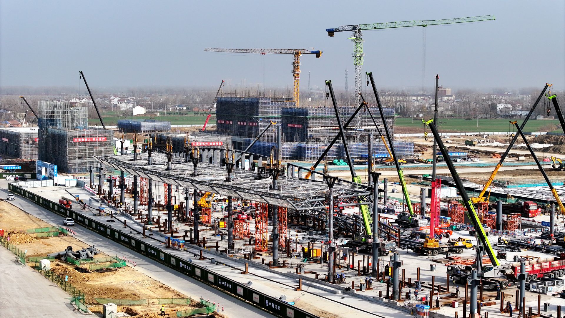 蚌埠民用机场航站区屋盖钢结构完成首区提升
