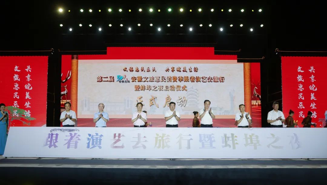 蚌埠发布客户端讯(记者 李扬 陈昂 文/图)8月22日晚,第二届“520”安徽文旅惠民消费季——跟着演艺去旅行暨蚌埠之夜在中国(蚌埠)古民居博览园启动。市委书记黄晓武在启动仪式上致辞,文化和旅游部产业发展司副司长马力,省文化和旅游厅副厅长、省广播电视局局长朱训义,安徽演艺集团有限责任公司党委书记、董事长张健,副总经理陈飚,安徽广播电视台副台长彭以学,安徽旅游集团党委副书记、总经理邱军,安徽广电传媒集团产业集团常务副总经理苗峰,安徽省文投公司副总经理范仁平,市领导倪建胜、郭鹏、潘君齐、徐伟红、荀异然等出席。