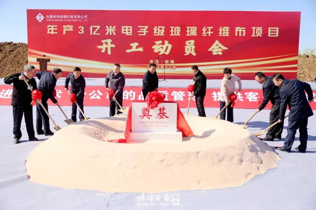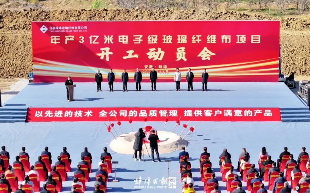11月29日上午,台嘉蚌埠玻璃纤维有限公司年产3亿米电子级玻璃纤维布项目开工动员会在龙子湖区举行。市委书记黄晓武宣布项目开工,台玻集团玻纤事业部总经理林嘉佑致辞。市领导马军、张晓静、郭家满,蚌埠市台湾同胞投资企业协会会长巫界树、台嘉蚌埠玻璃纤维有限公司总经理萧世钦等出席开工动员会。