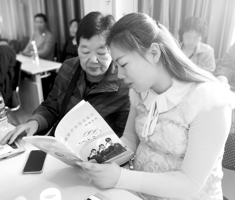 施家洼社区,工作人员为老年人讲解食品药品安全知识。