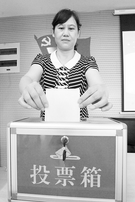 张公山社区③党员志愿者深入居民中,评选居民代表。