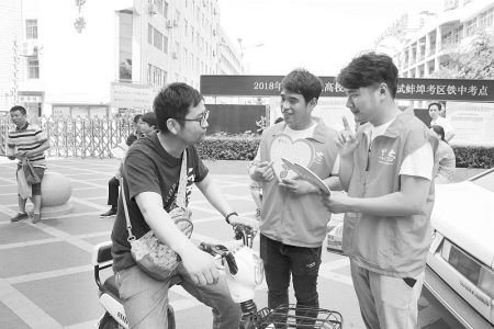 考点附近的营业厅也敞开大门,让家长们吹着空调,静候孩子考试归来。