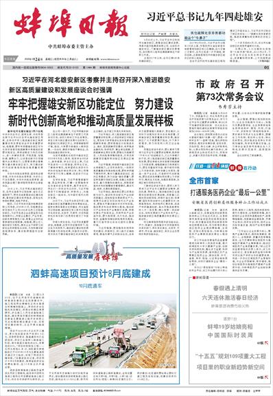 泗蚌高速项目预计8月底建成