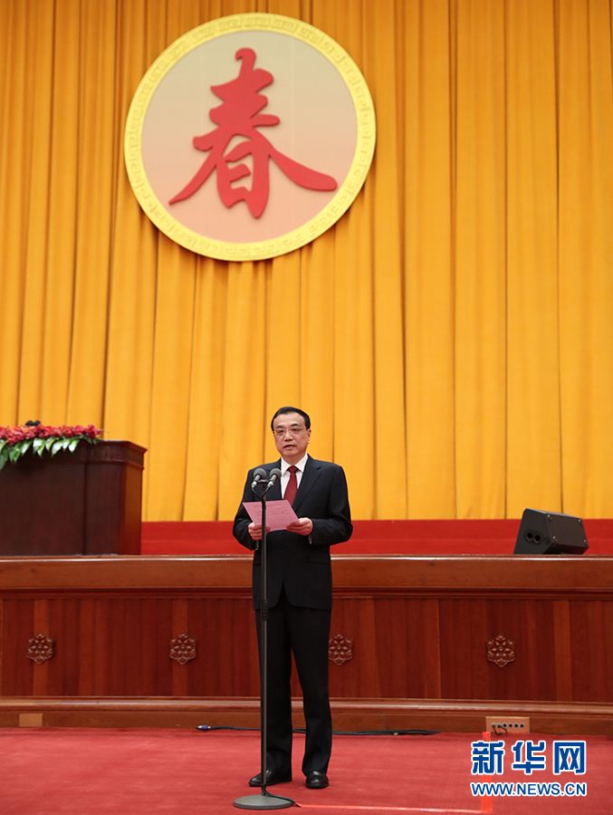 2月3日,中共中央、国务院在北京人民大会堂举行2019年春节团拜会。中共中央政治局常委、国务院总理李克强主持团拜会。 新华社记者 黄敬文 摄
