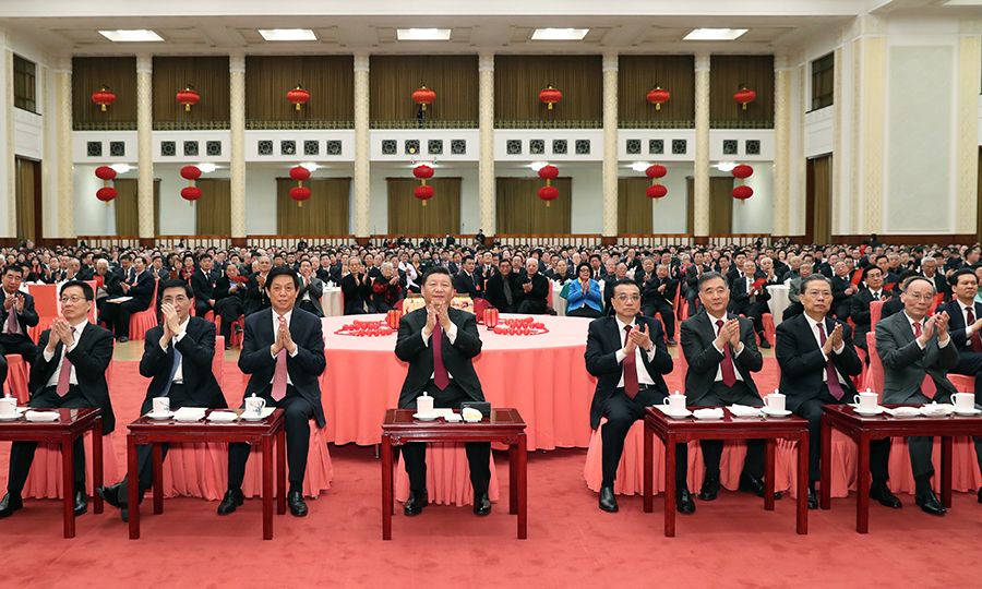 党和国家领导人李克强、栗战书、汪洋、王沪宁、赵乐际、韩正、王岐山等出席团拜会,李克强主持。