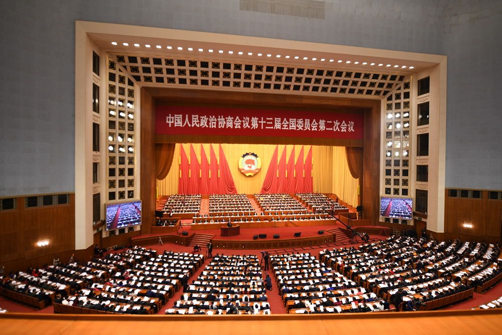 全国政协十三届二次会议于3月3日下午3时在北京人民大会堂开幕。开幕会上,2000多名全国政协委员将听取和审议政协全国委员会常务委员会工作报告和政协全国委员会常务委员会关于政协十三届一次会议以来提案工作情况的报告。人民网记者 于凯 摄