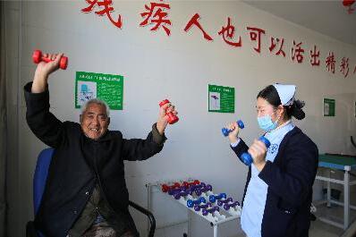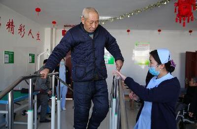 养护院老人在进行康复训练没有全民健康,就没有全面小康。