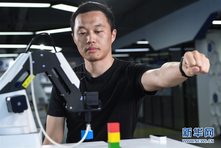 刘培超在位于深圳的越疆科技总部操纵第一代机械臂(4月11日摄)。1986年出生的刘培超来自山东,2014年,他来到深圳与四个伙伴一起以机械臂为方向,创立越疆科技。在研究第一代产品的时候,由于遇到技术难点,刘培超和伙伴们不断相互鼓励,下定决心坚持做下去。在大约一年的时间里,他们利用各种机会寻找资源丰富知识,开拓思路,最终取得突破,完成了第一代桌面机械臂产品。如今,刘培超的团队从5个人变成近300人,产品也从最初的桌面智能机械臂拓展到全感知工业机器人、协作机器人等产品。由于价优质美,越疆工业机器人的出口量也在国产品牌工业机器人中位居前列。 青年是整个社会力量中最积极、最有生气的力量,国家的希望在青年,民族的未来在青年。奋斗是青春最亮丽的底色。让青春在新时代改革开放的广阔天地中绽放,让人生在实现中国梦的奋进追逐中展现出勇敢奔跑的英姿。 新华社记者 毛思倩 摄