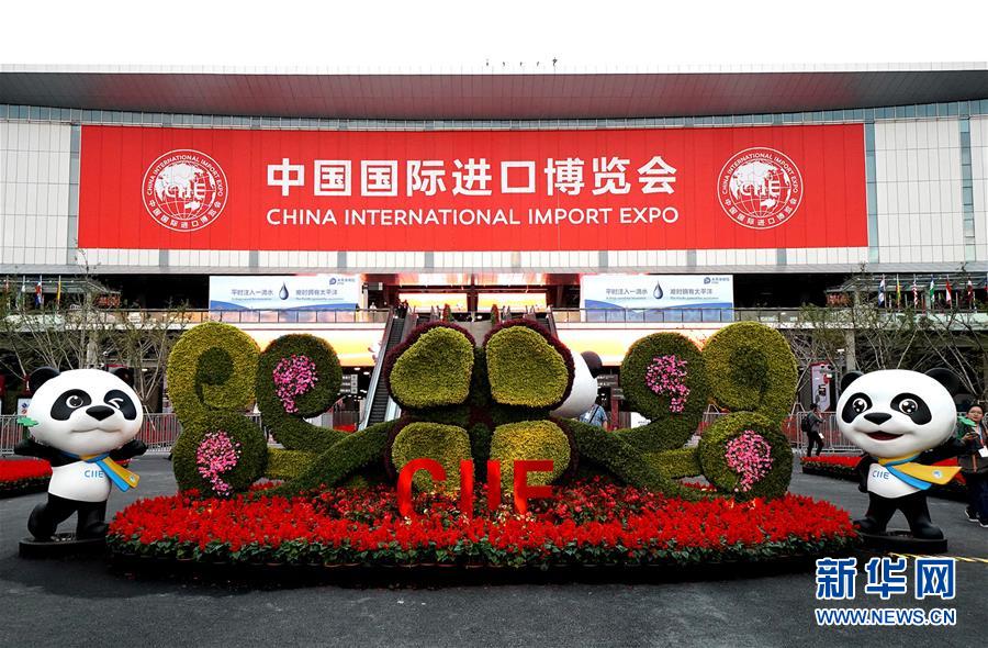 在国家会展中心(上海)场馆外,进博会吉祥物“进宝”准备迎接四方宾客(2018年11月4日摄)。 新华社记者陈飞摄