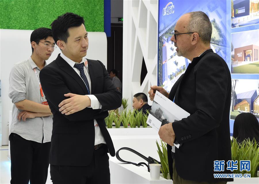 在中国国际服务贸易交易会主会场,参展人员在澳大利亚国际商业产业园展区交流(5月28日摄)。 新华社发(任超摄)