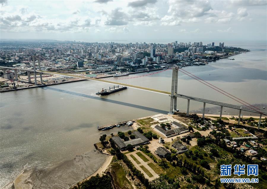 这是2019年4月8日在莫桑比克拍摄的马普托大桥(无人机拍摄)。 新华社记者张宇摄