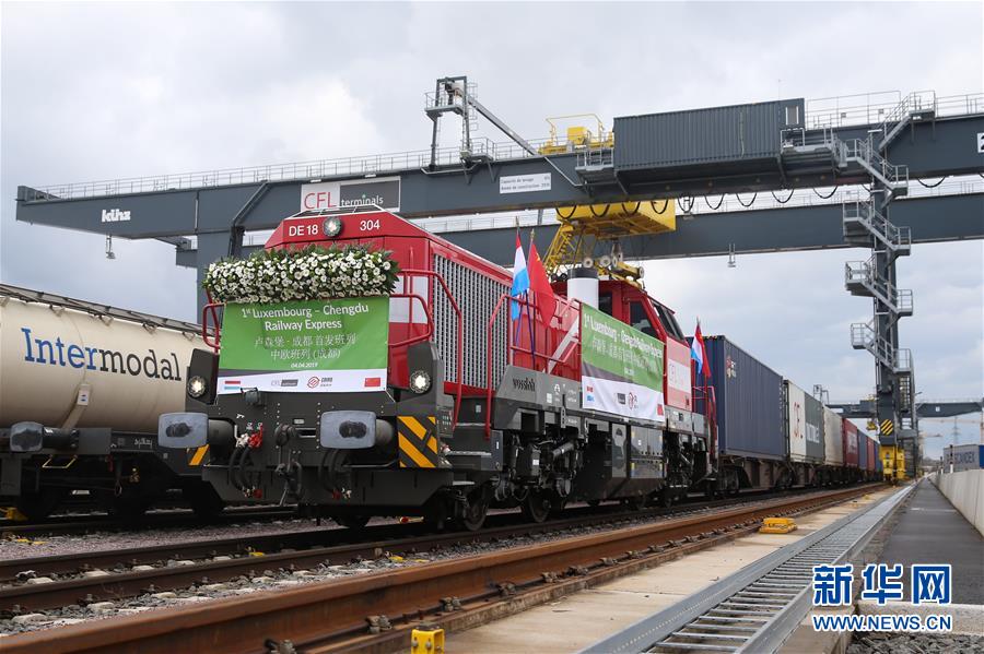2019年4月4日,首趟卢森堡至成都中欧班列在卢森堡迪德朗日铁路场站准备出发。 新华社记者郑焕松摄