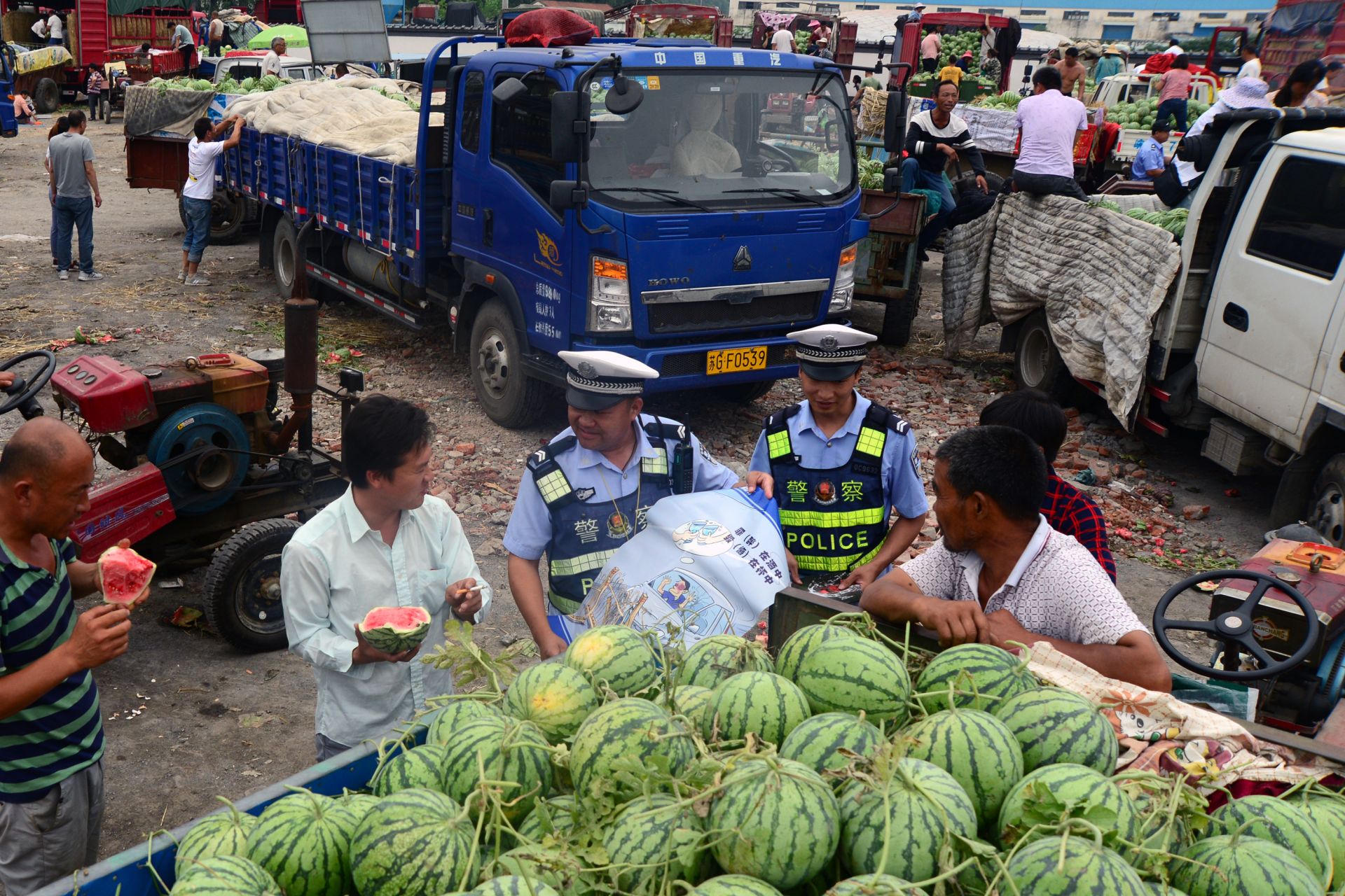 固镇交警保障瓜农瓜商安全、有序购销西瓜