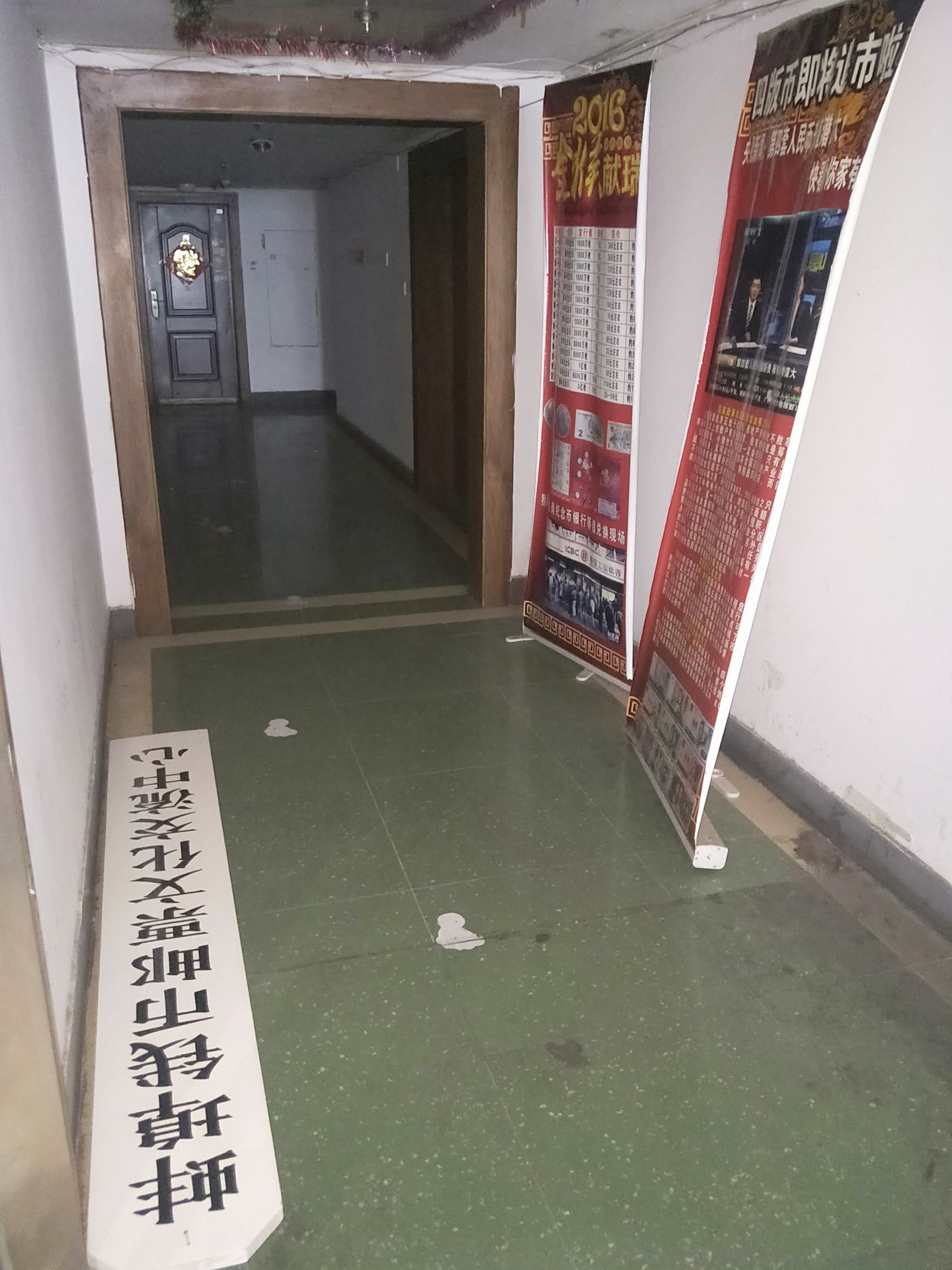 6月25日上午11时许,记者来到裕华大厦13楼,防盗门上还贴着该公司的广告。此时,大门紧锁,两张宣传广告还放置在门口。一块“蚌埠钱币邮票文化交流中心”的牌匾倒在地面,公司已人去楼空。