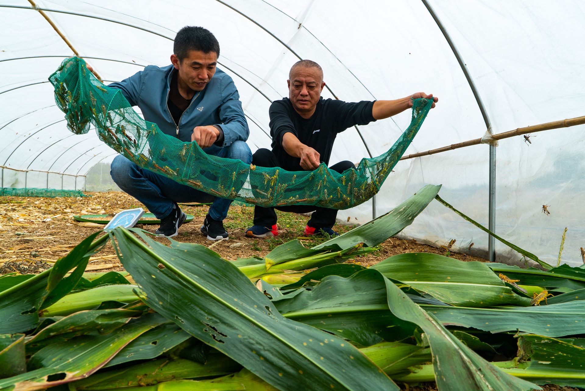 为了更好地带动贫困户脱贫致富,今年3月份,在村支书王友战的带领下,五河县头铺镇花木王村村委会班子成员每人投资5万元建起了12个蚂蚱养殖大棚,成立了峰乾蚂蚱养殖合作社,经过半年多的实践摸索,蚂蚱养殖收益良好,每亩效益可达一万多元。目前,该合作社已经带动了10户贫困户就业。 李向前 摄