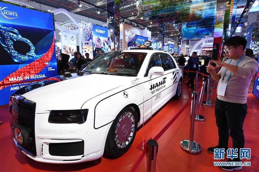 11月6日,观众在第二届进博会俄罗斯国家馆参观。 新华社记者 范培珅 摄