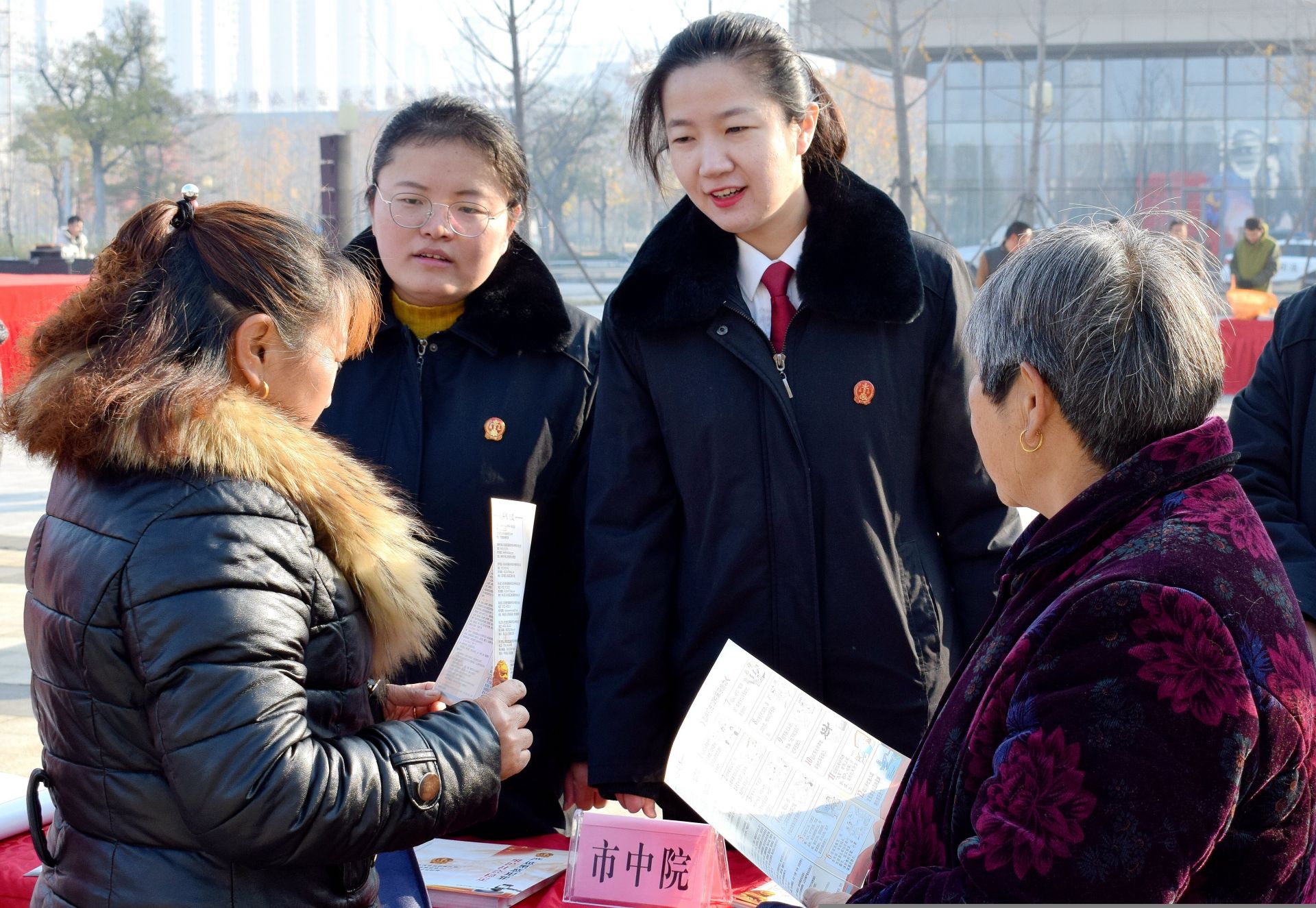 12月3日,在蚌埠市2019年“宪法宣传周”活动启动仪式现场,市中院等职能部门通过发放资料、提供咨询等方式向群众宣传新修订的宪法内容和常用的法律法规知识,营造尊崇宪法、学习宪法、遵守宪法、维护宪法、运用宪法的浓厚氛围。记者 张怿 摄