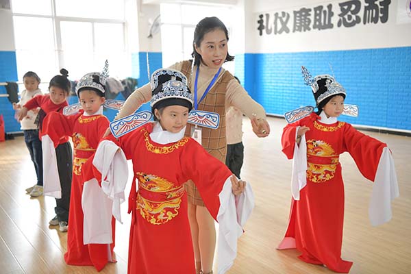 近日,蚌埠六中教育集团汤和路校区“小小黄梅戏”社团正在排练。