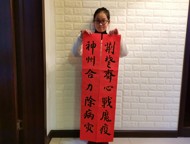 两人孩子想妈妈了,只能通过视频和妈妈“见面”。学习了两年书法的孩子写了一副对联送给妈妈,希望她能早日战胜疫情,平安回家。蚌埠日报全媒体记者 张婷婷 通讯员 王传义