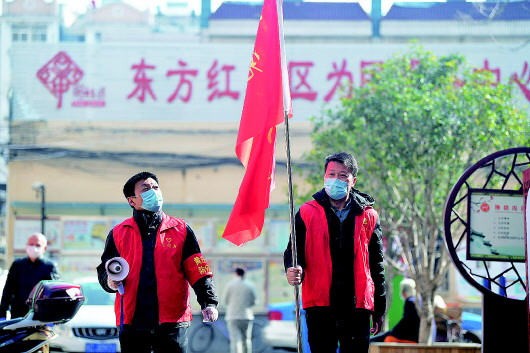 黄庄街道东方红社区奋战在社区一线的志愿者们,正在进行防疫巡逻和宣传,受到了居民的称赞。