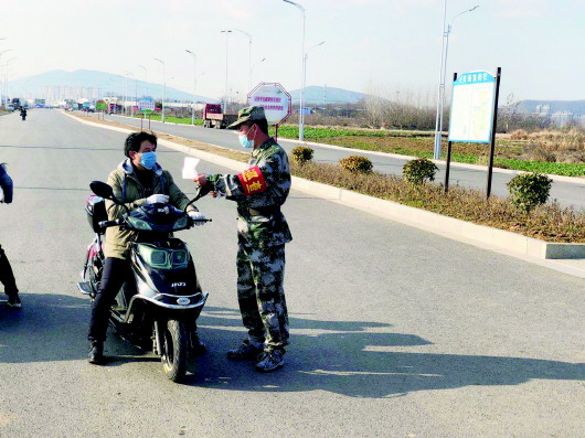 日前,秦集镇秦集村值守点,退伍军人张彭自愿参与疫情防控工作。秦集镇干部群众或捐赠消毒液、医用口罩、食品等物资,或奋战在一线,用自己的方式全力支持疫情防控。     陈娇 摄
