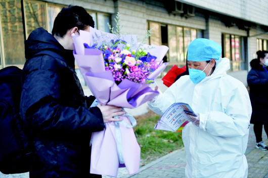 “祝贺你们,可以回家了,不过回家后还是要继续居家观察。”当天上午,治愈患者陆续走出蚌医一附院隔离病区。蚌医一附院医疗专家组专家、副院长李光早对治愈患者表示祝贺,同时提醒他们出院后注意事项。