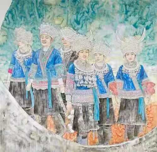 《苗家喜事多》表现苗家丰收的美好生活场景。入选中国美协举办“吉祥草原·丹青鹿城”全国中国画作品。